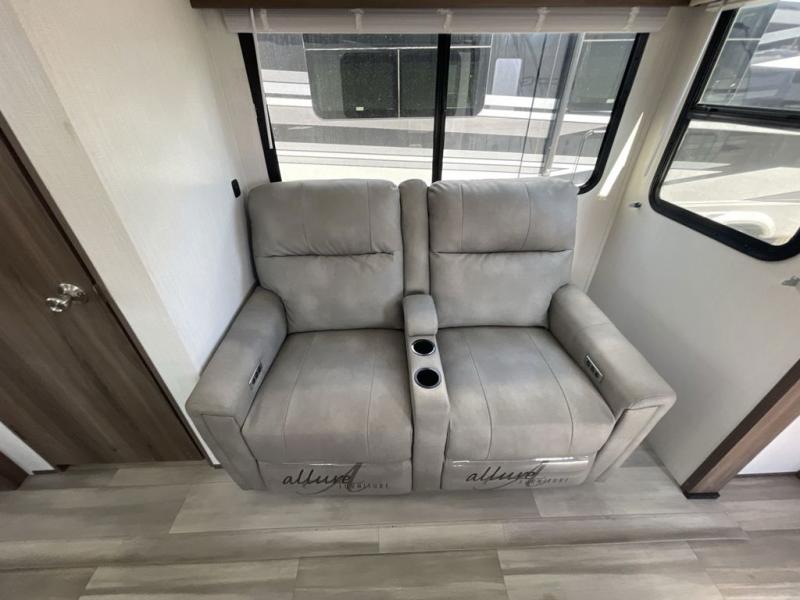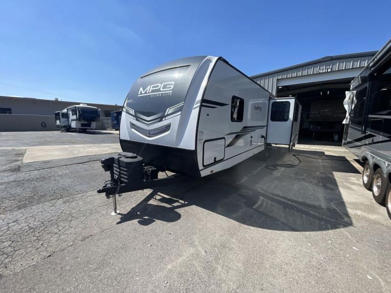 With any MPG travel trailer or toy hauler by Cruiser you will find a 6' 11" barrel roof, Azdel composite laminated walls, and a high gloss fiberglass front cap with LED lighting for a sleek look. There are seamless kitchen countertops and plywood flooring that will be easy to clean, plus residential hardwood cabinets with hidden hinges for a more at-home feel. The slam latch baggage doors with magnetic latches will make loading up easier than ever, plus the pass-through storage includes LED lights you are sure to appreciate. Each model also includes multiple charging stations with 12v and USB ports, a four speaker soundbar system to listen to your playlists, and a dual ducted A/C to keep you cool during those hot summer months!