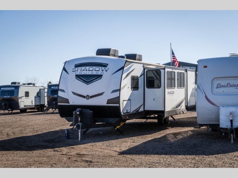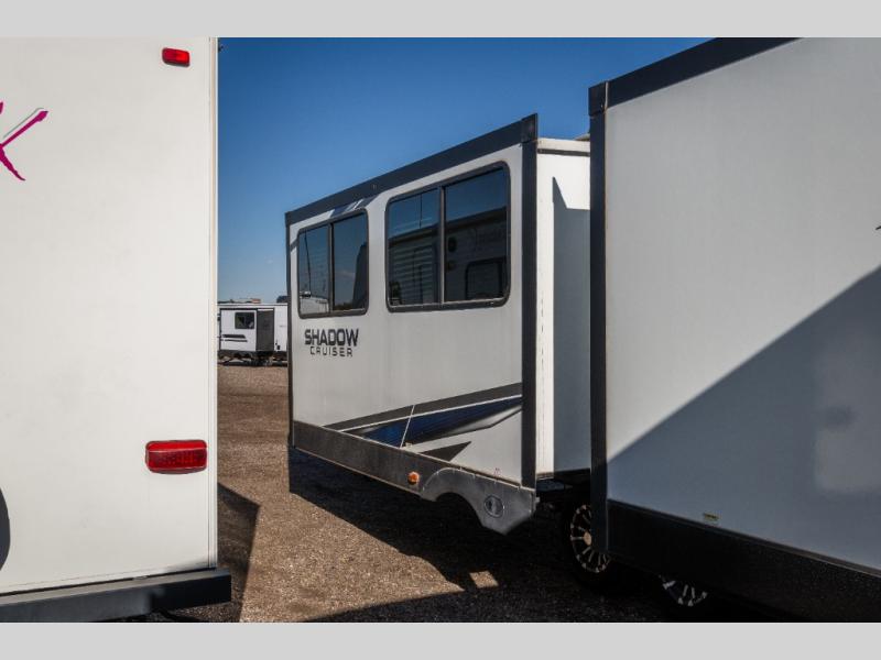 Each one of these Cruiser Shadow Cruiser travel trailers come with convenient features for you to make memories that will last a lifetime! The five sided aluminum framing holds together the Azdel composite laminated sidewalls which will keep your unit from rotting away, plus the surround seal slide system has a rain gutter to aid in keeping water out. Their strong foundation is built with a powder coated structural I-beam frames and three times the amount of required full-height cross members to provide a more solid floor foundation with more attachment points. Travel any time of year with the Extended Season package that includes an enclosed underbelly with forced heat. There is also a dual ducted 13,500 BTU A/C to keep you cool and a high BTU ducted furnace to keep you warm. There is over 40 cu. ft. of pass-through storage and slam latch baggage doors with magnetic latches to keep it in place while you access your items. Come find the perfect model for you today!