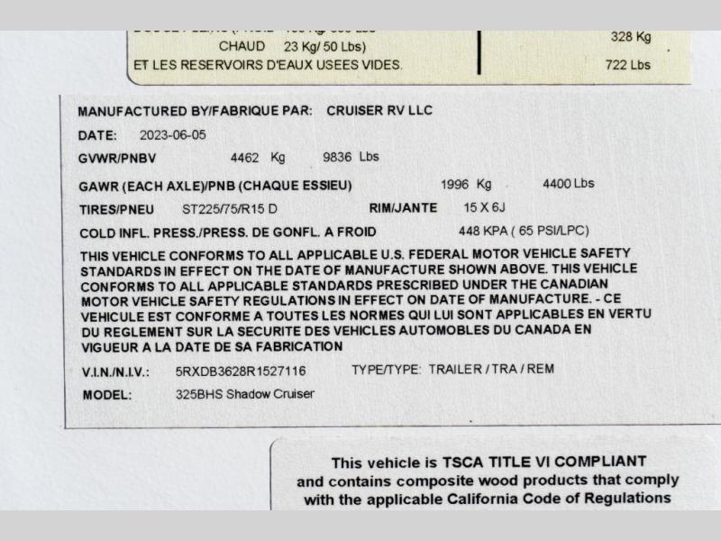 Cruiser Shadow Cruiser travel trailer 325BHS highlights: