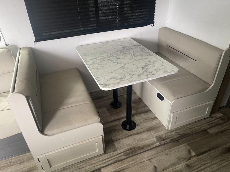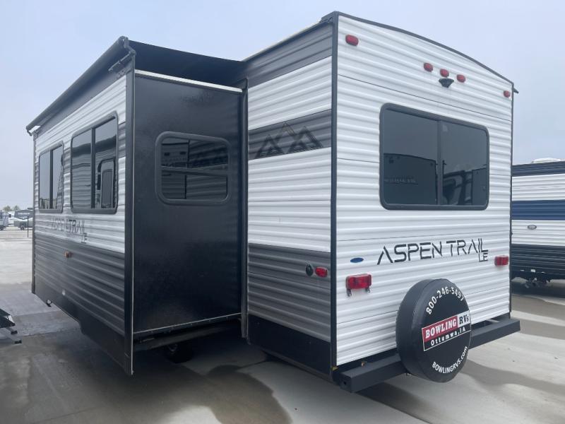 With any Aspen Trail LE travel trailer by Dutchmen, you will have a durable roof structure with a TPO roof, 3/8" decking, an insulated structure with a metal exterior panel, plus superior A/C cooling for those hot summer camping months. The interior offers a Home Series interior design collection for an at home feel, full extension drawer guides throughout, oversized windows, pleated shades, and no carpet to quickly clean up sand and water from the lake. You'll also appreciate the magnetic baggage door catches, a high output furnace, an on-demand water heater, and the Solar Spirit Packages that will allow you to do some off-grid camping. Make your selection today and enjoy a smaller, lighter-weight RV!
