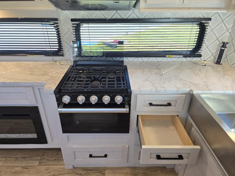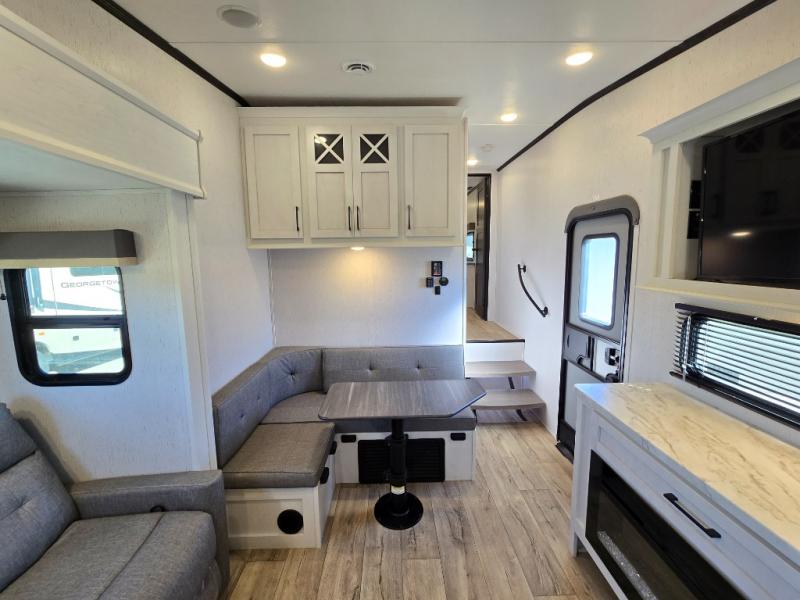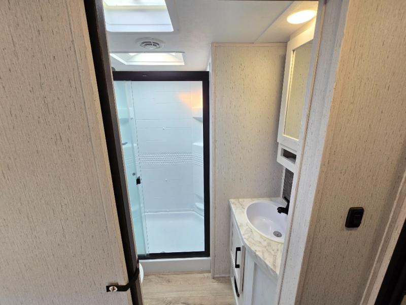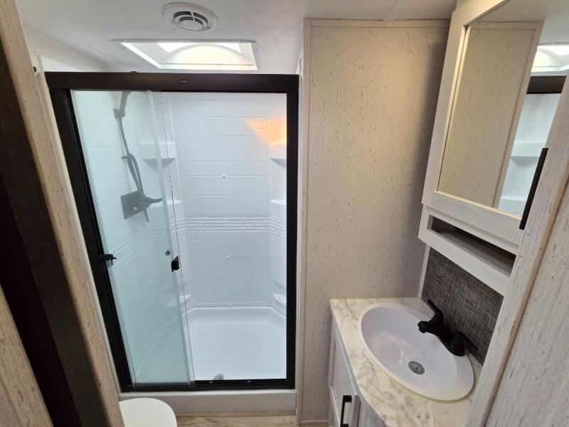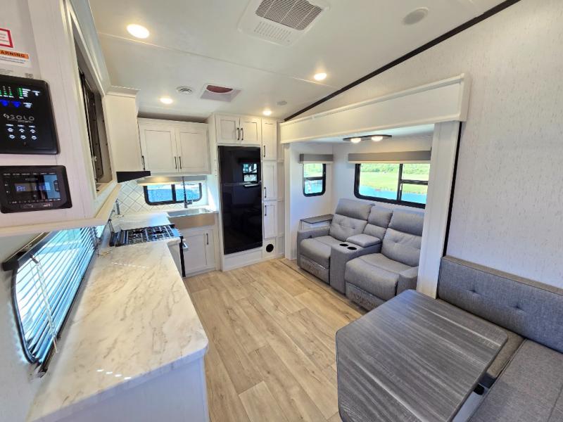 Each one of these Dutchmen RV Astoria Half-Ton fifth wheels feature a fiberglass exterior for added durability and an All Weather Thermal Package so you can camp all year long! There are also Secure Stance entry steps, slam latch baggage doors, an outside shower port, and many more exterior conveniences. You'll enjoy a 200W solar panel for off-grid capabilities, a back up camera for easy parking, and a power awning with LED lights for an inviting outdoor space. The interior is designed with high-gloss acrylic backsplash, night shades throughout the living area, and slick black appliances. The 60,000 BTU tankless water heater will provide endless hot showers, and the dual ducted A/C will keep you cool all summer long.