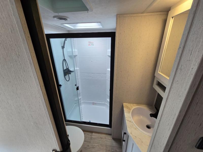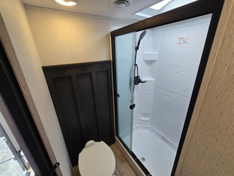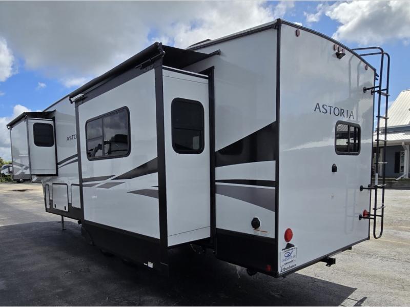 Each one of these Dutchmen RV Astoria Half-Ton fifth wheels feature a fiberglass exterior for added durability and an All Weather Thermal Package so you can camp all year long! There are also Secure Stance entry steps, slam latch baggage doors, an outside shower port, and many more exterior conveniences. You'll enjoy a 200W solar panel for off-grid capabilities, a back up camera for easy parking, and a power awning with LED lights for an inviting outdoor space. The interior is designed with high-gloss acrylic backsplash, night shades throughout the living area, and slick black appliances. The 60,000 BTU tankless water heater will provide endless hot showers, and the dual ducted A/C will keep you cool all summer long.