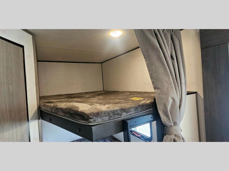 The Coleman Lantern LT Series travel trailers by Dutchmen will make each camping trip enjoyable! Each model is constructed with a TPO roof membrane and diamond plate rock guard for added protection during transport. There is a power tongue outside, along with backup camera prep and solar prep if you want the option to go off-grid. The overhead kitchen cabinetry will let you bring along necessities to cook meals each day, and the magnetic cabinet door catches will keep everything secure during towing. There are also pleated shades in the living room and bedroom, a large single basin kitchen sink, and many more hassle-free camping amenities!