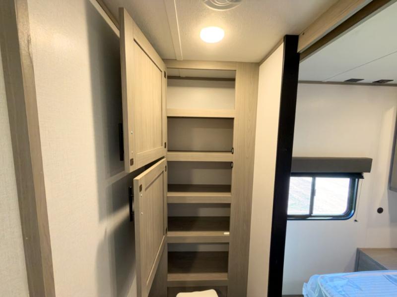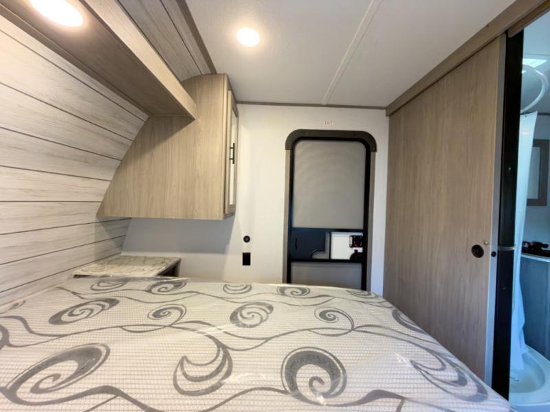 The Coleman Lantern LT Series travel trailers by Dutchmen will make each camping trip enjoyable! Each model is constructed with a TPO roof membrane and diamond plate rock guard for added protection during transport. There is a power tongue outside, along with backup camera prep and solar prep if you want the option to go off-grid. The overhead kitchen cabinetry will let you bring along necessities to cook meals each day, and the magnetic cabinet door catches will keep everything secure during towing. There are also pleated shades in the living room and bedroom, a large single basin kitchen sink, and many more hassle-free camping amenities!