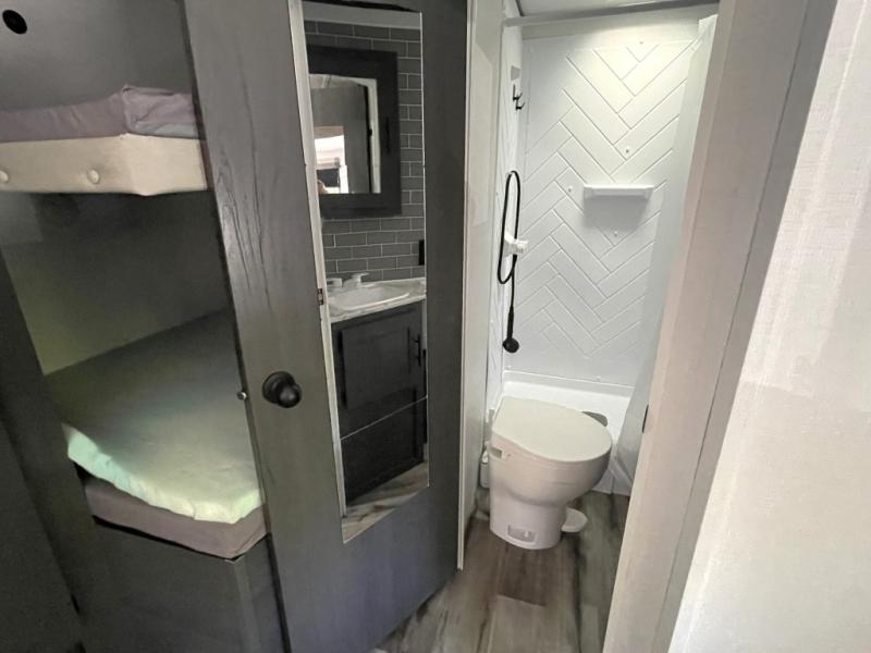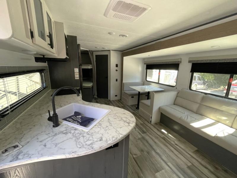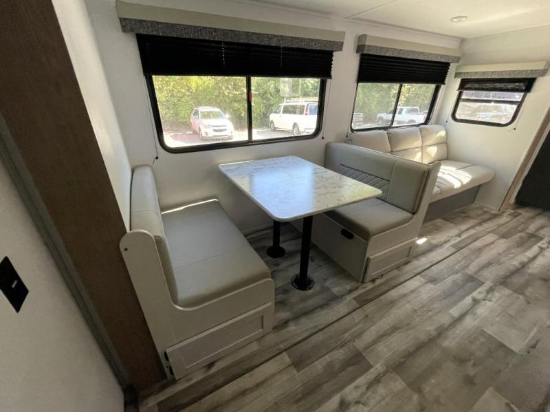 Family-Friendly Layout: Accommodates multiple sleepers with a jack knife sofa, booth dinette, and bunks.