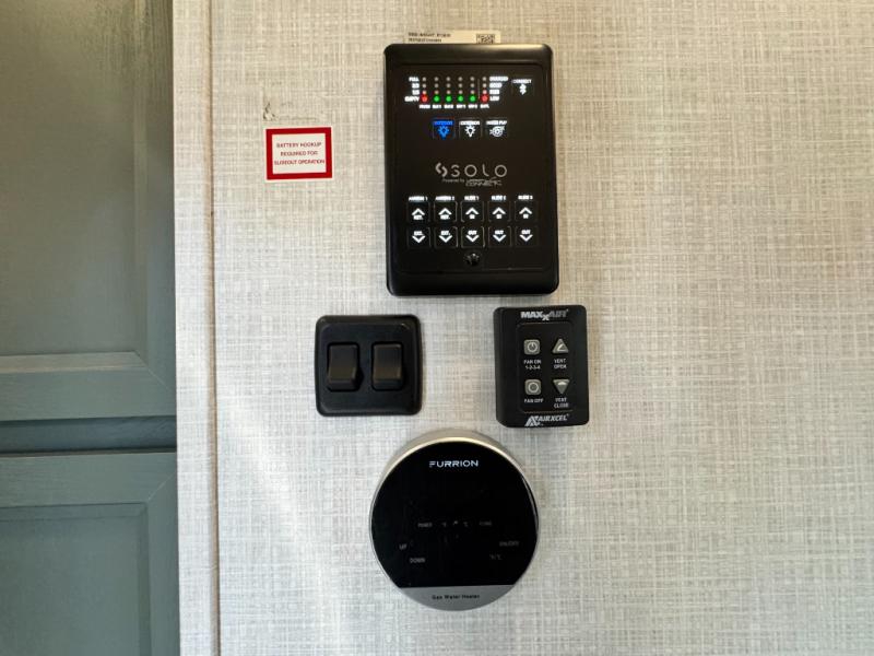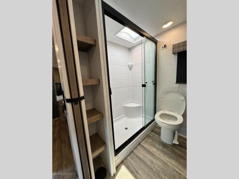 Each Eddie Bauer fifth wheel and travel trailer by Dutchmen RV lets you adventure the great outdoors in style! The Journey Package includes a heated and enclosed underbelly to help extend your camping season, a back up camera for easier parking, and a tankless water heater which will come in handy if you're camping with a larger group of friends. The HyperDeck floor construction is ultra durable and the premium entry steps means you can safety come and go as you please. Some of the interior comforts you'll enjoy are the one-piece seamless countertops, cozy living room fireplace, convenient under bed storage, and the large farm style sink for easy clean up. Each Eddie Bauer also includes the Spirit I Package with inverter prep, roof panel prep, and side panel prep that provide off-grid capabilities!