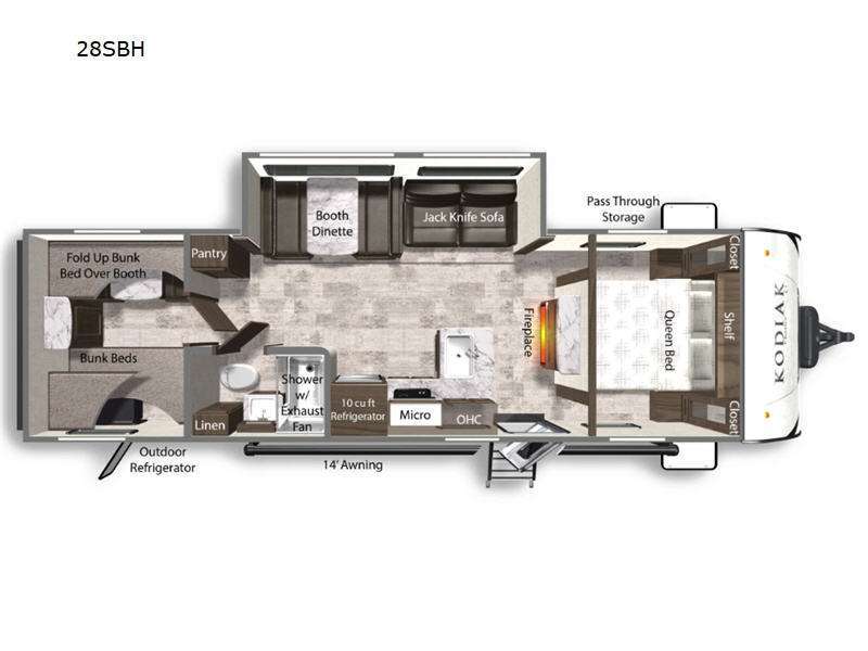 | Available Beds | Three Bunks, Booth Dinet, Jack-knife Sofa, Queen Bed |