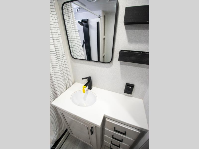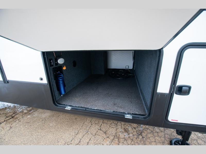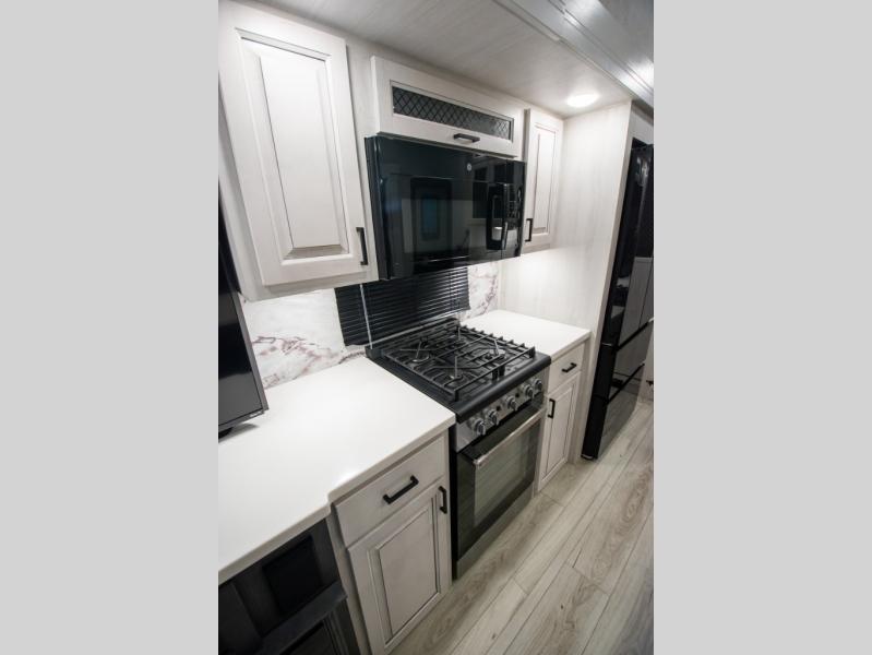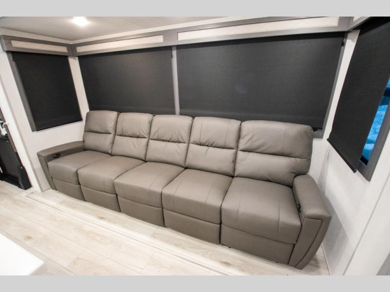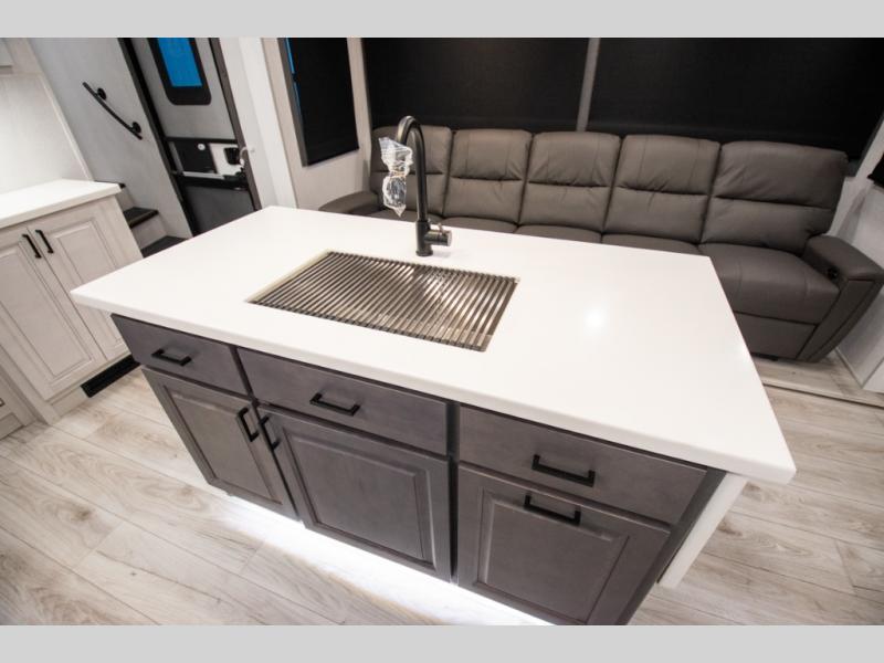 There is just too much luxury to name on the EAST TO WEST Ahara fifth wheel! These units are quite impressive, and once you see them, you'll know what we mean. The Ahara first grabs your attention with its hi-gloss gel-coated fiberglass exterior which showcases two power awnings with LED lights, an LP quick connect, an exterior cable/satellite hookup, and a universal all-in-one docking station. For towing, you'll find a MORryde CRE 3000 suspension, Dexter Gladiator thick-wall 7,000-LB axles with Nev-R-Adjust brakes, and preparations for a rearview camera. Traveling during all seasons is also made easy with the high-efficiency triple A/C system, a 40,000 BTU high-capacity furnace, a heated, insulated, and enclosed underbelly and dump valves with circulating heat, and Radiant Technology Composites insulation in the roof, front cap, and underbelly.