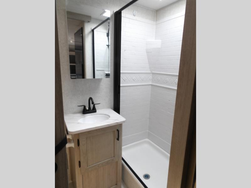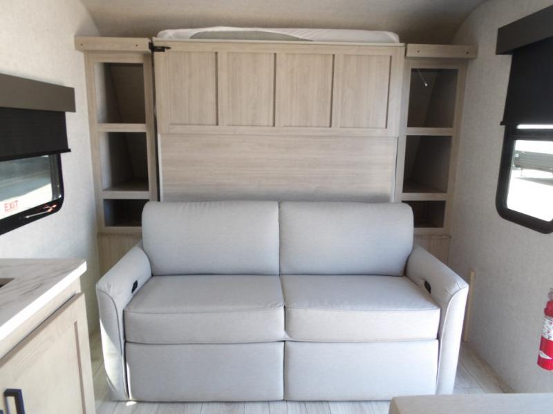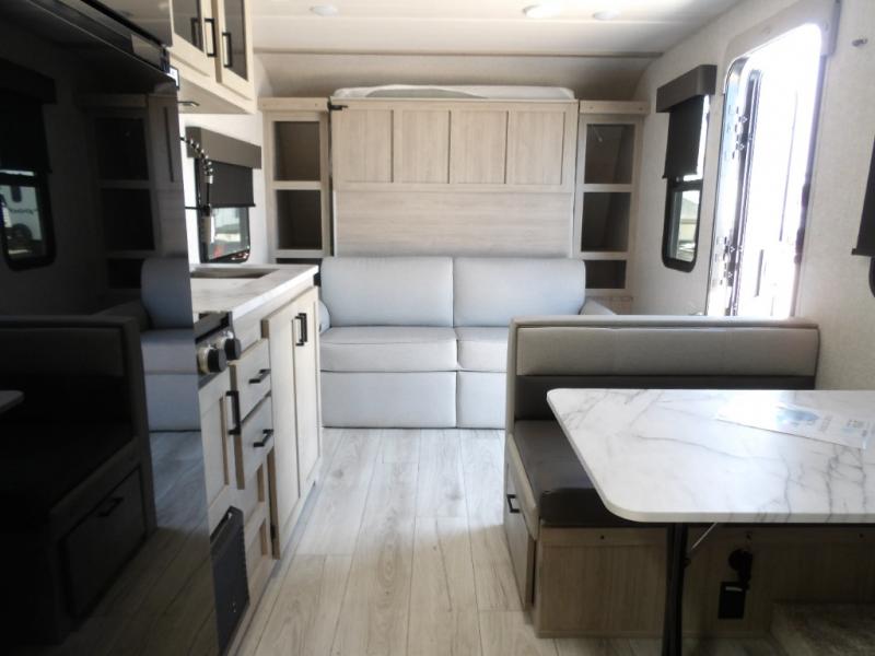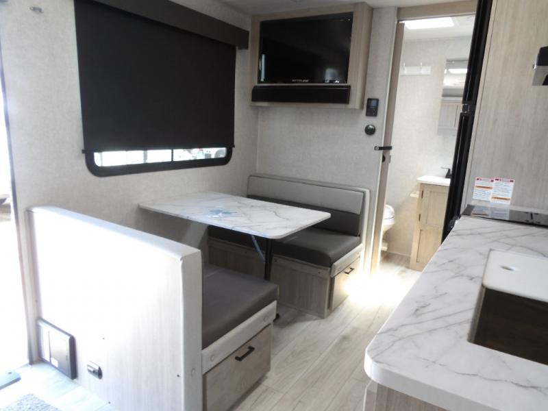 So much versatile space in this Alta travel trailer! The 1600MRB introduces the LE line of single axle Alta travel trailers. With a Murphy queen bed, you can stow it away during the day and relax on the sofa instead. The booth dinette has storage underneath on both sides, and an entertainment center is located above for easy watching of the optional TV. A full rear bath includes a shower with skylight, plus a wardrobe to store all your towels and toiletries. Outside you'll find more conveniences like an LP quick connect, TV hookup, and pass-through storage.