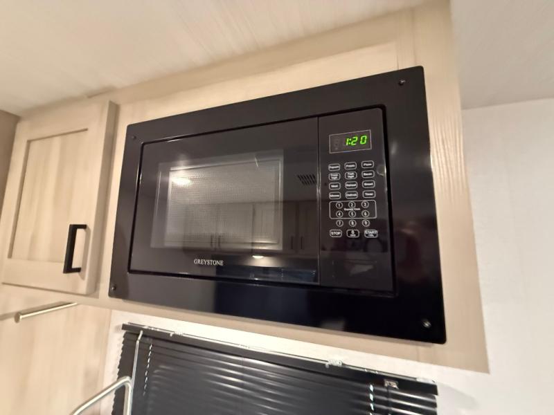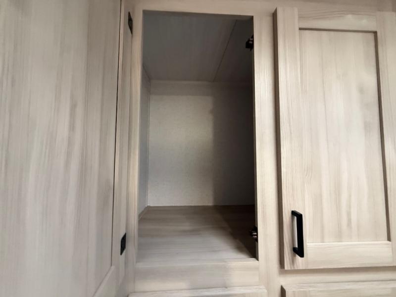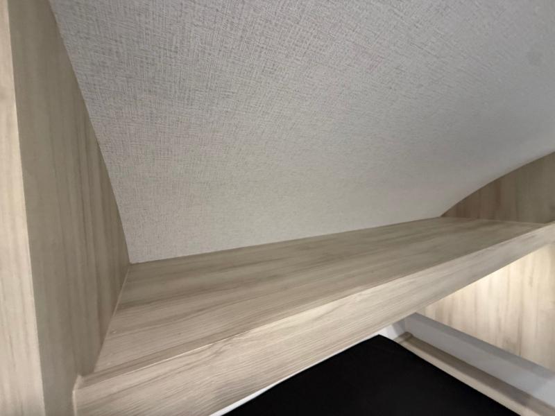This Della Terra LE model is the perfect couples unit featuring a front bed that features storage beneath, dual bedroom wardrobes, and an overhead shelf for books. There is a booth dinette with storage beneath the seats to accommodate everyone for a meal, or to gather for a game of cards. You will appreciate the rear bath featuring a 24" x 40" walk-in shower, toilet, vanity/sink with medicine cabinet, and large wardrobe for your hanging clothes. The kitchen allows you to cook while you travel inside with a refrigerator, two burner range with a glass top, and overhead microwave oven. A single sink and overhead cabinetry will allow you to wash dishes and put them away neatly until their next use. A 13' awning outside offers an added living space protected from the sun and rain, and your camp chairs and outside equipment and games can be neatly tucked away in the large pass-through storage up front. An outside shower in back allows you to easily rinse off camp gear before storing as well.