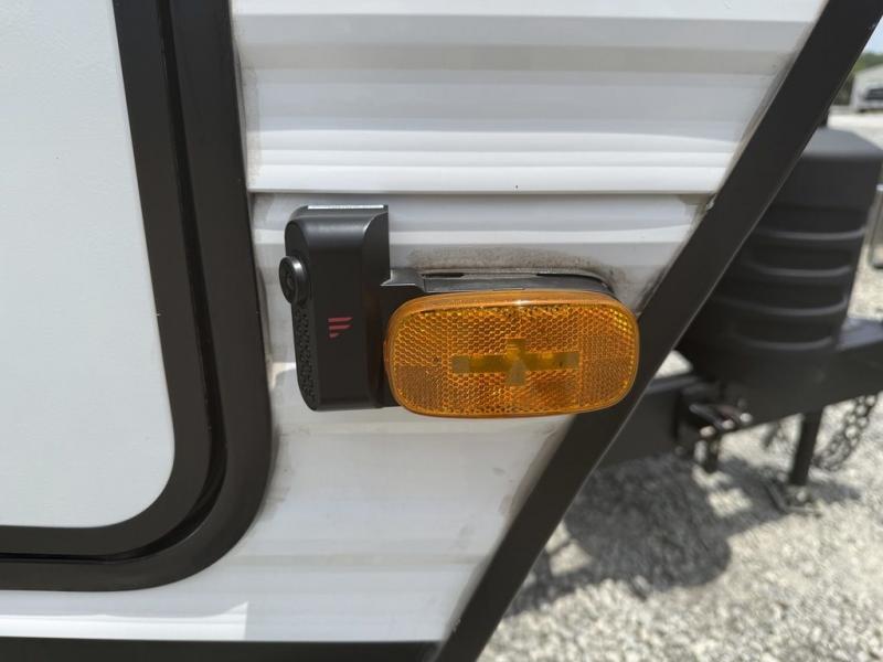 Need sleeping space for ten? This one might be the perfect one for you with 41" x 74" bunks in back, a king bed up front, a jackknife sofa with storage beneath, and a booth dinette that can be transformed into added sleeping space when needed too. This cozy trailer provides everyone a dry place to sleep and relax when inside, and you can all take turns getting cleaned up using the bathroom with a 24" x 40" walk-in shower. A two burner cooktop will allow you to whip up something to eat inside if you don't enjoy cooking over an open fire. There is also a nice 15' patio awning to provide shade and protection from the summer sun or a light rain which gives you even more space to set up outdoor living underneath with camp chairs and even a table if you choose. The exterior pass-through storage space is perfect for outdoor games, fishing poles, and any other camping gear that you might like to bring along.