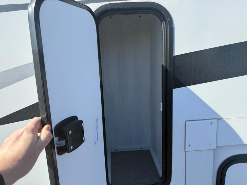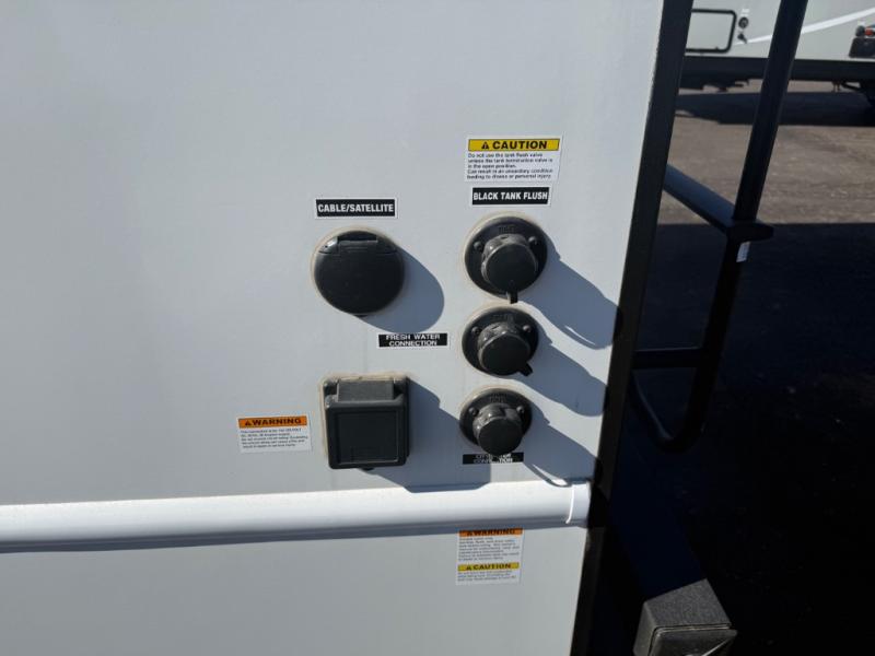 Whether you're traveling to the Grand Canyon or your local state park, you'll enjoy every minute in this coach! The swivel captain's seats can become a part of the living area once you park, and your guests can sit around the U-shaped dinette within the full-wall slide. There is a swing arm TV in the cab-over bunk to keep everyone entertained, or you can all head outdoors to sit under the 16' awning. Head back inside to rest on the queen bed that folds up for more space, and the bedroom wardrobe will allow you to keep your clothes and shoes tidy!