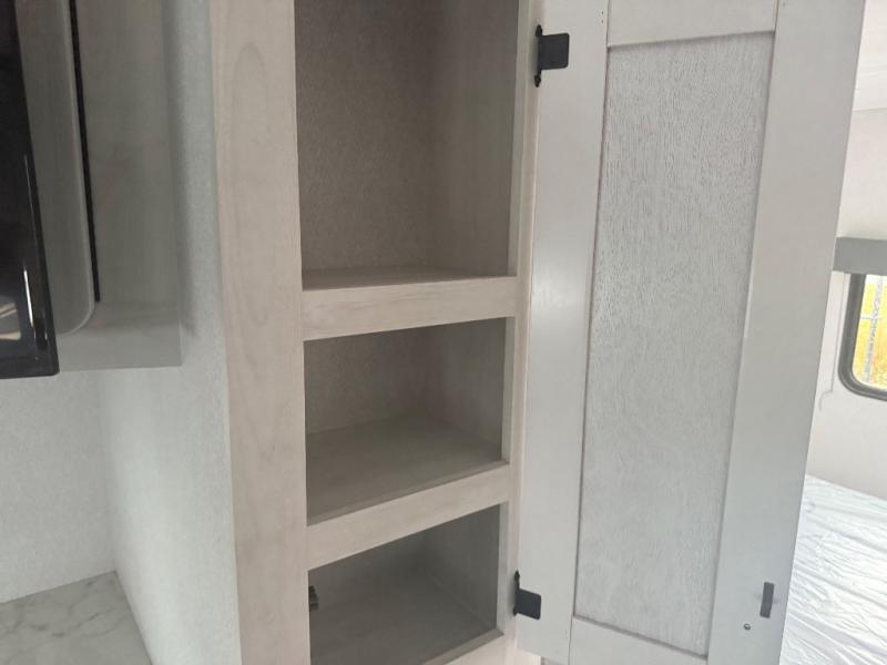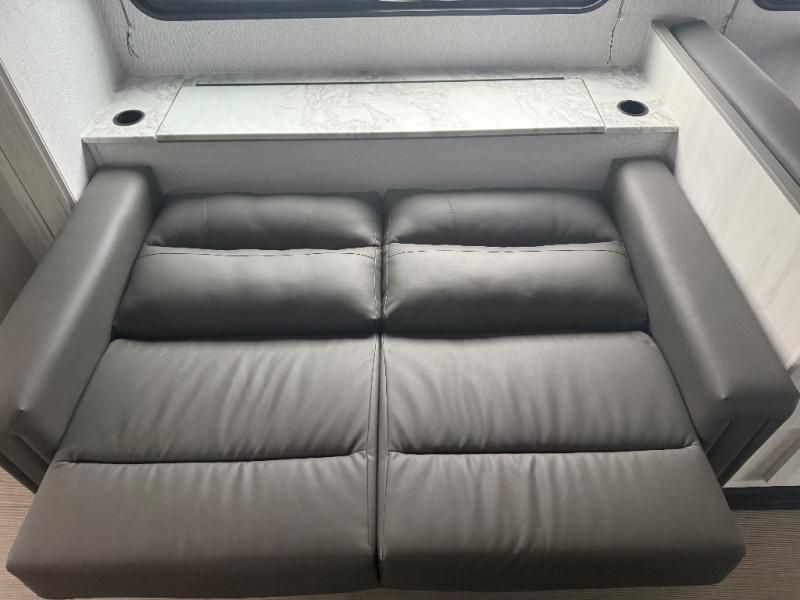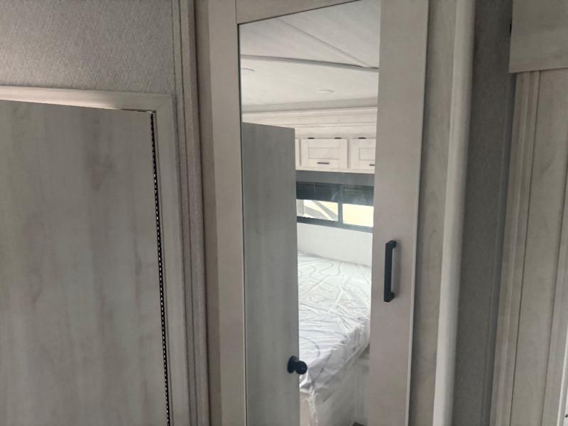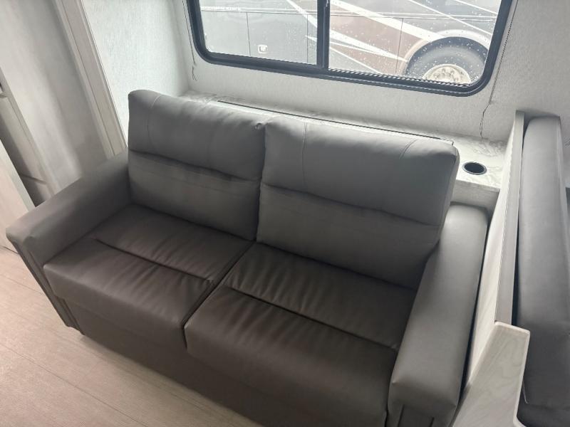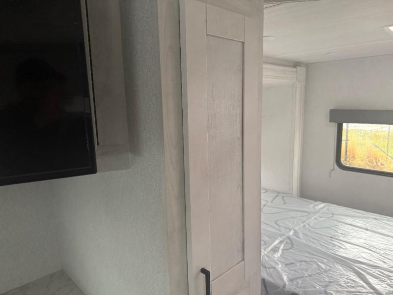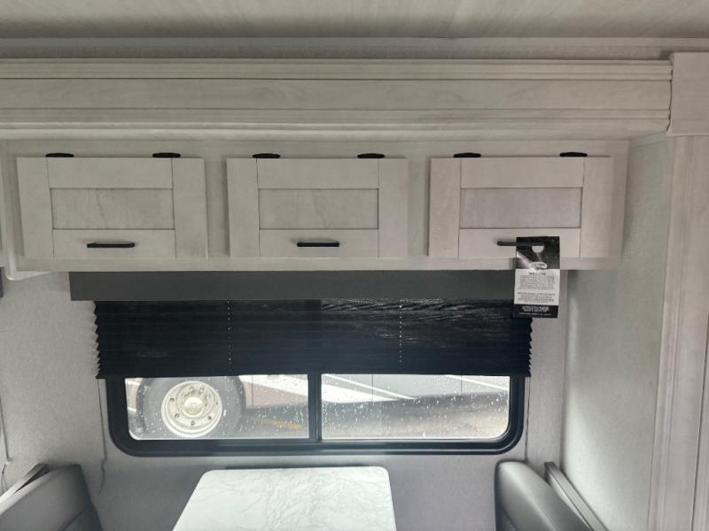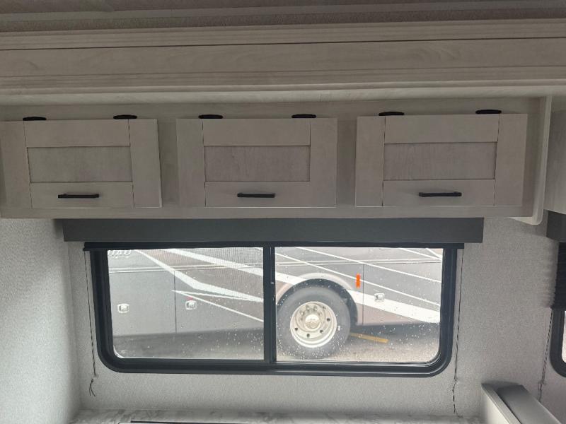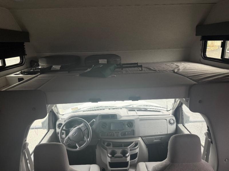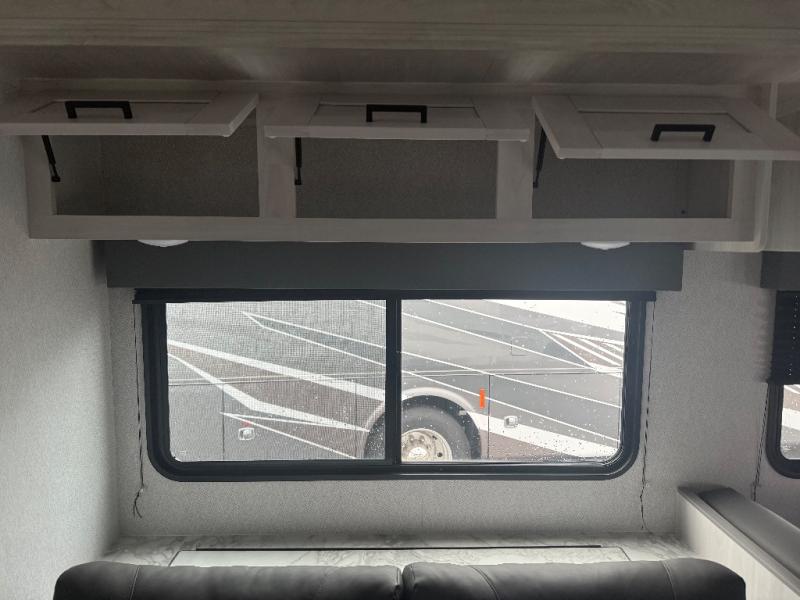 You can explore and discover so many new destinations with this Entrada Class C gas motorhome! The first thing that you'll notice about this coach is that it has extra interior living space because of the two slides. One of those slides holds the queen-size bed back in the private bedroom, and the bedroom is sectioned off from the rest of the coach with an accordion door. The full bathroom is right next to the bedroom so that you can quickly and effortlessly hop in the shower each morning. Outside of the bathroom, you'll find a linen closet which can hold your towels or toiletries, and the kitchen pantry can hold your snacks. This coach even has an LED TV for inside entertainment, so you can sit back on the sofa or booth dinette and watch with pleasure.