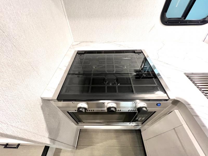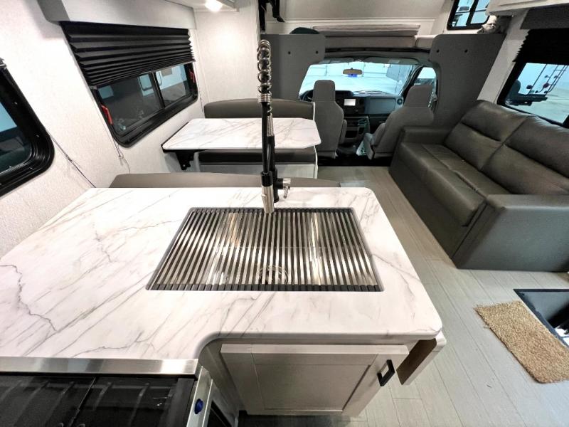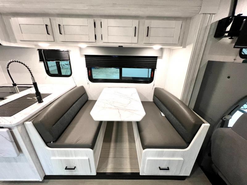 With any Entrada Class C gas motorhome from EAST TO WEST, the construction consists of a completely laminated coach, a one-piece molded fiberglass front cap, 2" thick sidewalls with Azdel composite exterior, a Dicor Diflex ll TPO roof, and integrated entry step. Some of the Entrada value package features include 12V tank heaters to camp during the cooler months, the Winegard Air 360+, plus backup and sideview cameras with monitor for safety on and off the road. The interior offers a 7-foot interior height for a spacious feel, and hardwood shaker style cabinets. Choose an Entrada for its tasteful design, attention to detail, bright interior and/or affordable price-point!