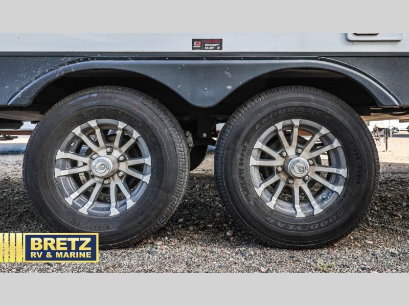 With any E-Series travel trailer by Ember RV you will enjoy a lightweight RV with all the "Essentials" needed for memorable trips in the great outdoors! Each model is constructed with durable laminated Azdel Onboard composite walls, a full walkable roof with a one-piece Tufflex PVC roofing material, and a gel-coated fiberglass exterior. The Dexter axles with E-Z lube hubs and forward self-adjusting electric brakes plus Goodyear Endurance tires will provide a smooth tow from home to campground. You will appreciate the Congoleum DiamondFlor "carpetless" interior that is easy to clean, and the hardwood framed cabinet doors will create a more residential feel. Each model includes a tankless on-demand water heater for endless hot showers and an 18,000 BTU Max Cool "Whisper Quiet" A/C, which is the largest single A/C in its class! An EmberLink Smart RV system will let you easily control features such as lights and slides and you can wash away those rainy day blues by watching the HDTV with a built-in Bluetooth AV system. If you're looking for off-grid capabilities, you might want to choose the optional Off-Grid Solar Package with 400 total watts of solar panels, a 2,000W Pure Sine wave inverter, and a Victron MPPT solar controller!