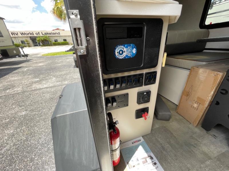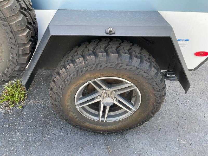 Expand your horizons with one of these Encore RV Venu teardrop trailers! They are 100% wood free with an all aluminum tube construction, an aluminum chassis, aluminum wheels, and a hi-gloss fiberglass one-piece roof. The Tweed interior walls come with Azdel and the one-piece Luxe vinyl flooring is not only durable, but also easy to clean. The exterior scare lights help to deter unwanted visitors. A few more safety features include a breakaway battery kit, safety chains, electric brake axles, and a full-size spare tire and mount just in case. You will stay in place once you set up too thanks to the four stabilizer jacks. Check one out today!