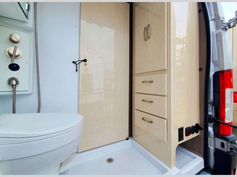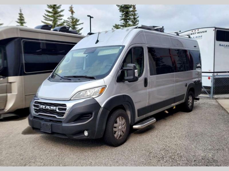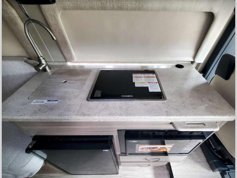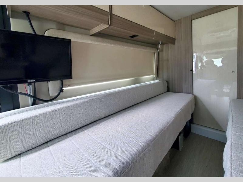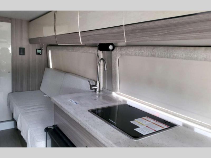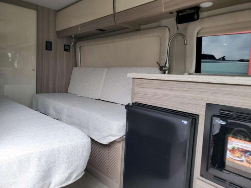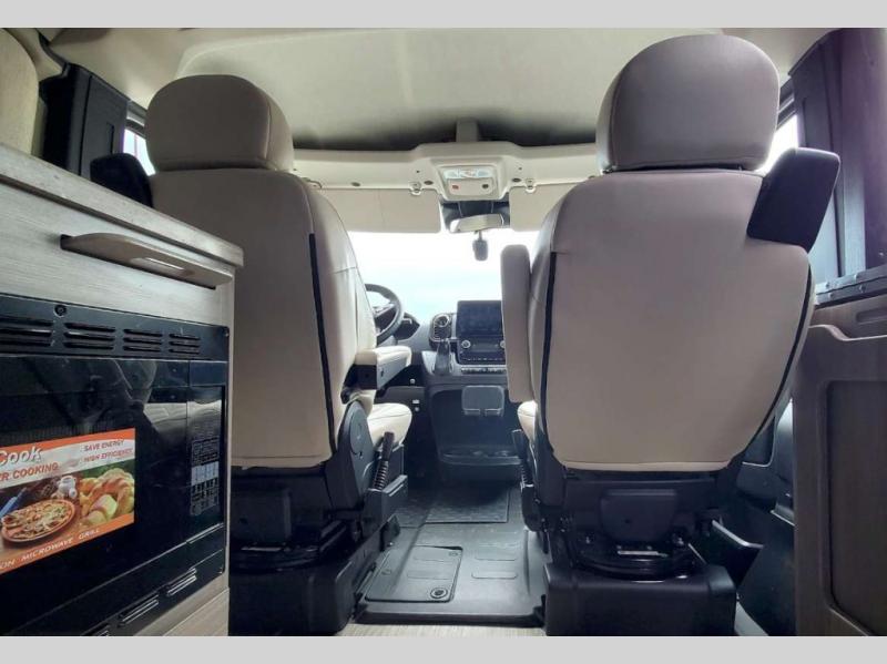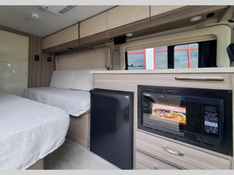 Your trek across country is made comfortable in this coach for two. You can swivel the captains seats around when you get to your destination, or head outdoors to sit under the 13' Thule armless awning with LED lights. The pull-out table indoors will provide a space for your coffee in the morning, while breakfast is being cooked in the convection microwave or on the two burner cooktop. A rear wet bath will allow you to stay clean throughout your trip, and you'll find plenty of storage space for your belongings. You'll love the versatile sleeping arrangements in this model that includes twin-size beds with a filler cushion that converts to a king-size bed, plus there is under-bed storage for your luggage. The optional Li Package can also be added which includes a 48V-210 amp hour smart lithium battery, providing 10KW hours of power, and more- see dealer for more details!