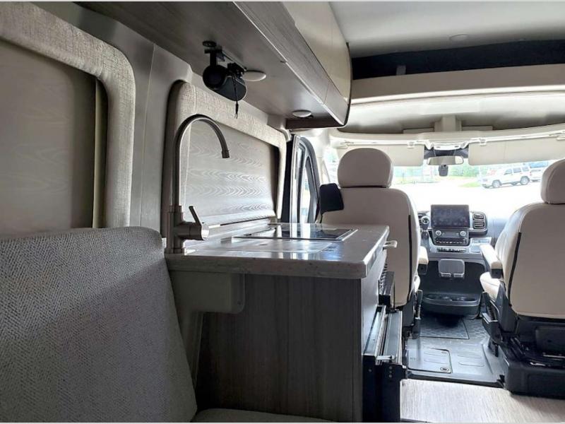 With any Ethos Class B gas motorhome by Entegra you will find helpful technology features, luxury amenities, and a smooth drive thanks to the E-Z Drive system. The 3.6L V6 24V VVT 276HP engine will power your trips near and far, plus there is an Onan 2800-watt gas generator on board and a 1,000-watt inverter. Put the 200W solar panel to use and you can do a little off-grid camping! Each model also includes a Truma Combi Eco Plus water heater and furnace, a 13,500 BTU A/C, a water filtration system, plus many more convenient systems. A 10" Uconnect infotainment center comes standard, along with a backup camera and a cab area privacy shade. You'll be traveling in luxury with residential vinyl flooring, Technoform European-style high-gloss cabinetry, a soft-touch vinyl celling, and solid surface countertops. Start a new adventure today in an Ethos Class B gas motorhome today!