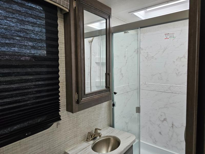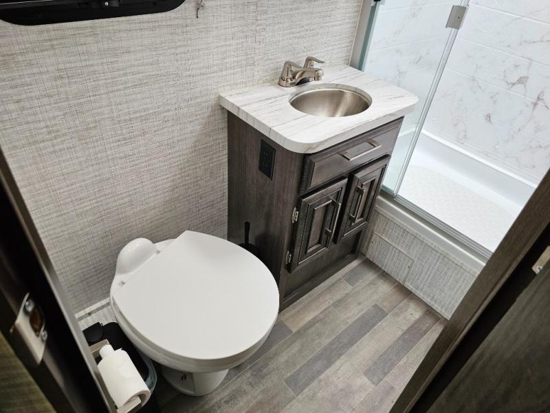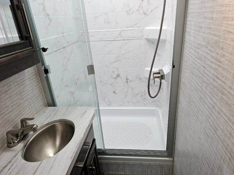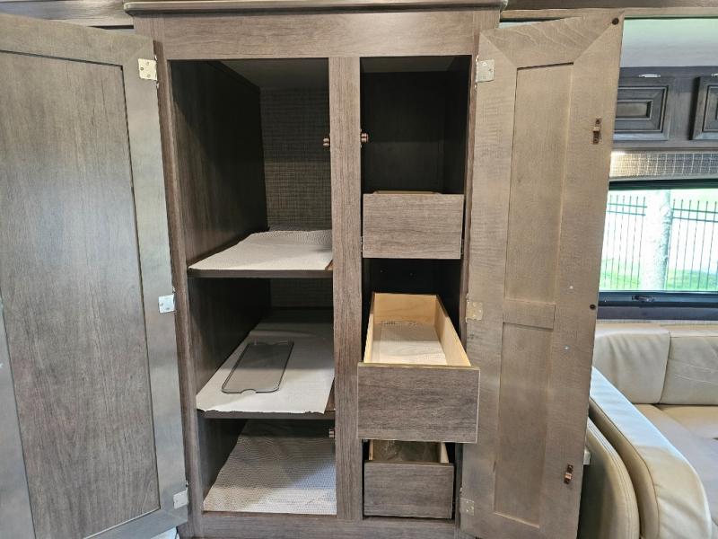 Looking to travel to see family and friends while stopping along the way to take in the scenery? Need comfortable accommodations for you and another plus extra sleeping space when you have overnight guests? This coach provides a full-wall slide for more interior floor space and includes a queen bed for a good night's sleep, a wardrobe for clothing, plus a U-shaped dinette and pantry. The dinette doubles as sleeping space, plus you have a cab-over bunk. The cook will have everything nearby to whip up meals including a residential-size microwave, and the full bathroom allows everyone to skip the public facilities along the way.