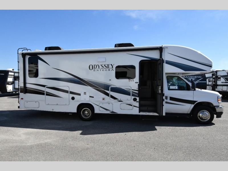 Get ready to elevate your travel experience with the pre-owned Entegra Coach Odyssey 26M—a Class C gas motorhome designed for travelers who want it all: luxury, performance, and versatility. Whether you’re planning a cross-country journey or weekend retreat, the Odyssey 26M delivers the perfect blend of residential comfort and open-road adventure.