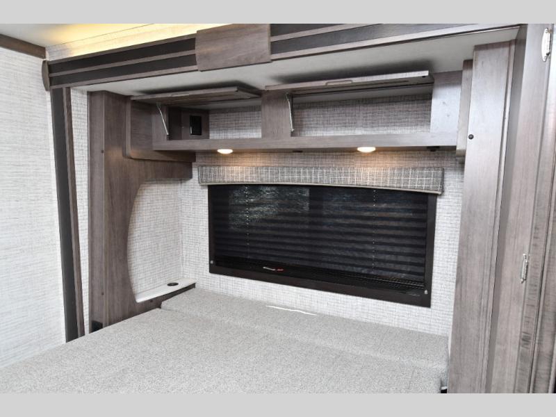 Cab-Over Bunk: Perfect extra bed or storage area for guests.