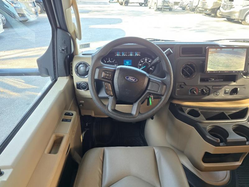 With any Odyssey Class C gas motorhome by Entegra Coach, the driver will appreciate the power from the 325 HP engine, the towing capacity from the 7,500 lb. hitch, the tire pressure monitoring system, the navigation from the Sony infotainment center with Apple CarPlay and Android Auto, plus the backup and side-view cameras when parking and driving down the highway. The kitchen offers full amenities including a recessed stainless steel sink with a cutting board sink cover, LED-lit pressed countertops, a decorative backsplash, and a pop-up charging station with 110 outlet and USB plugs to keep your smart phones charged. Get ready for luxury in a Class C, choose your favorite today!
