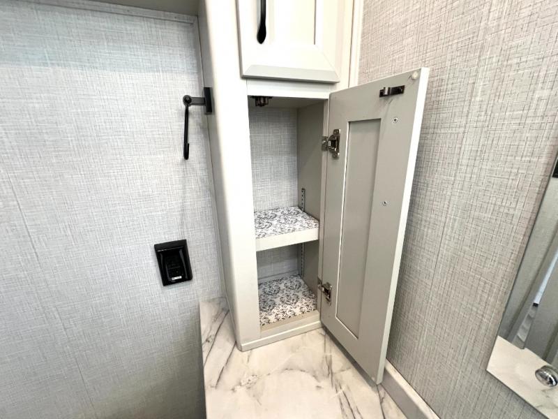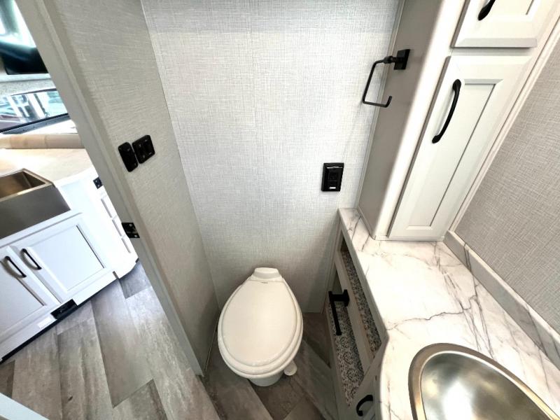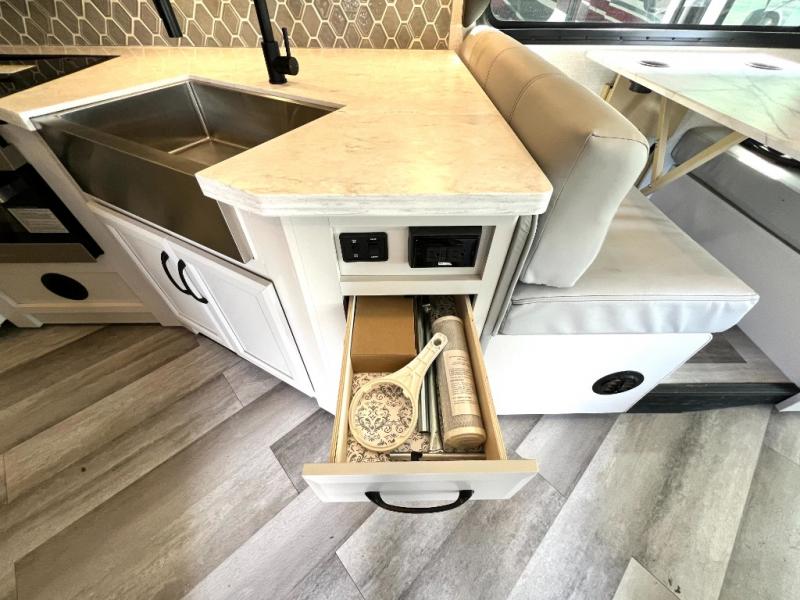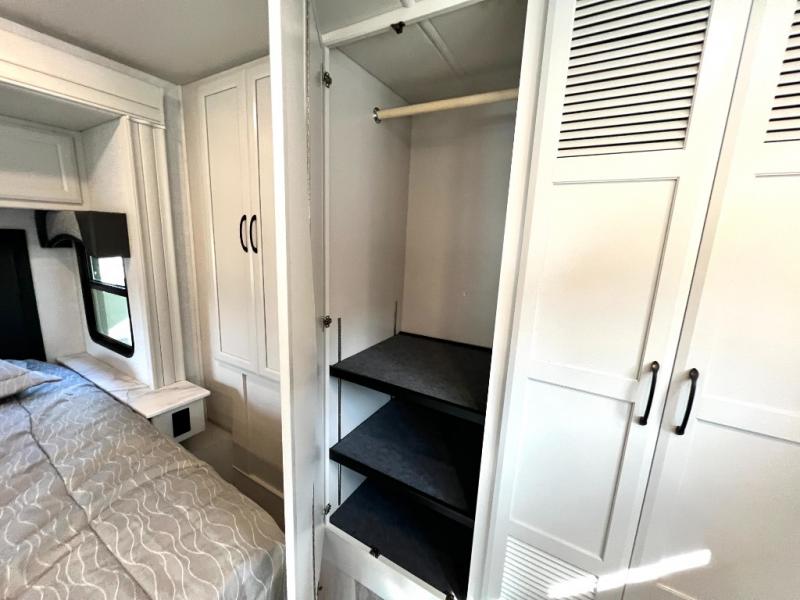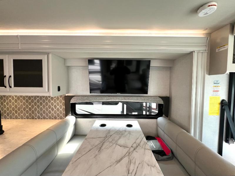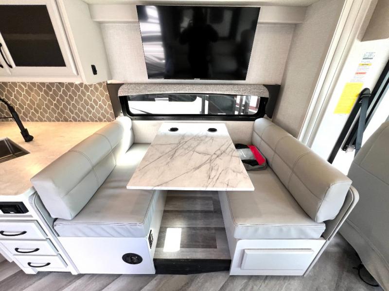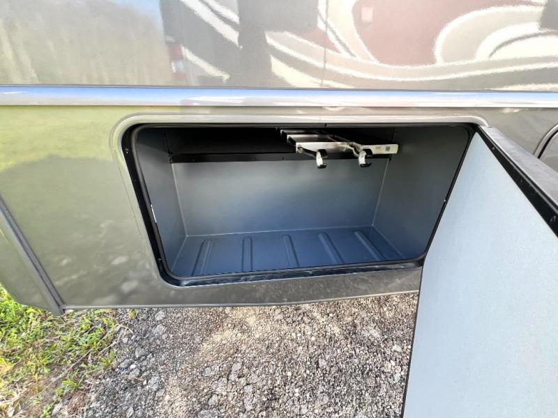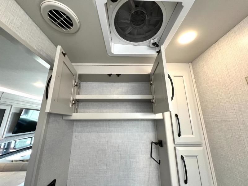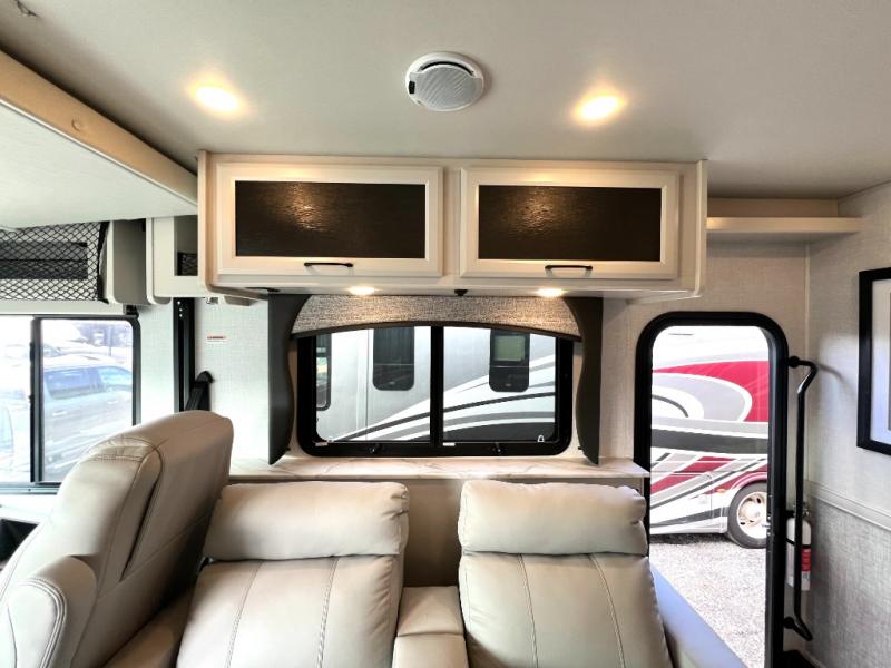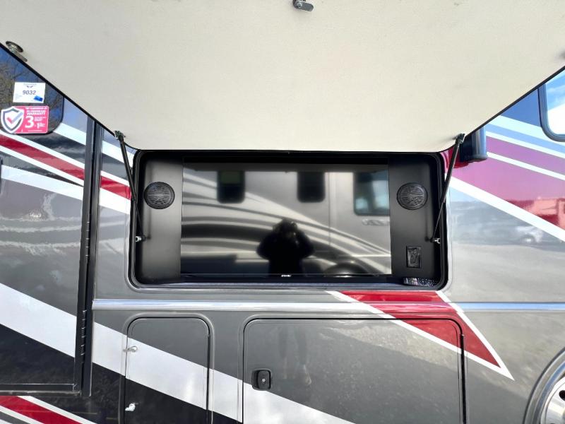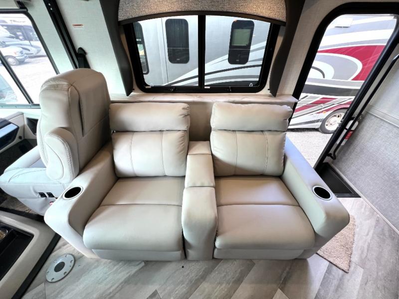 If you never leave home without your sense of adventure, then you should make this Fortis Class A gas motorhome your home because it allows adventure to travel with you! The interior is luxurious and comfortable with its Serenity Series RV king bed, full-wall slide, residential refrigerator, and LED TVs. You will gain extra sleeping space when you utilize the dream dinette and jackknife sofa as beds, and there is a Hide-A-Loft drop-down bunk above the cab for kids who think bunk beds are the best.