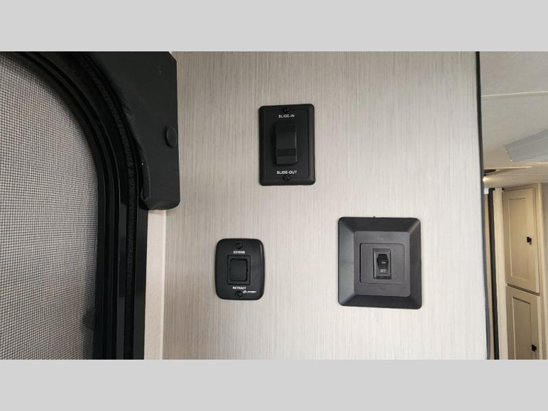 Outdoor kitchen and 18' power awning for enhanced campsite living