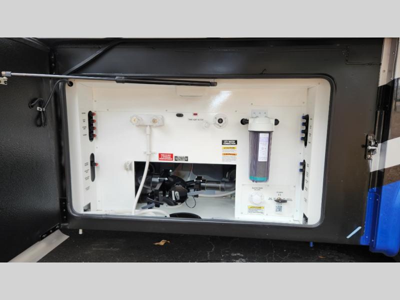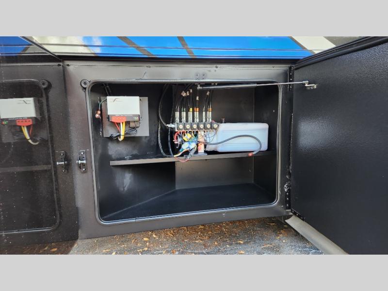 Enjoy modern connectivity and convenience with integrated smart controls, premium sound systems, and multiple entertainment options. The exterior entertainment center extends the luxury outdoors, making it perfect for tailgating or relaxing under the awning.