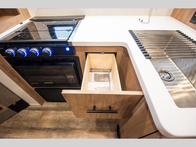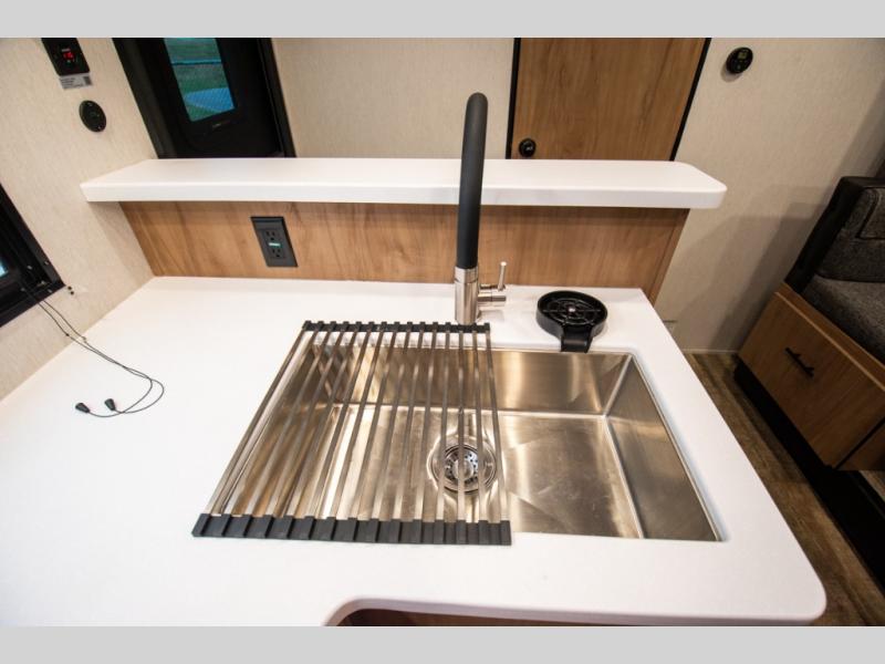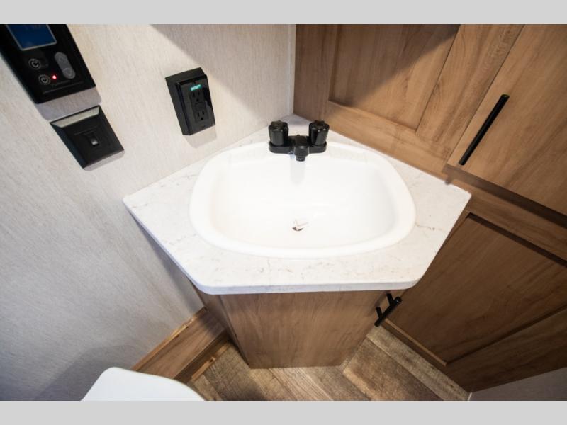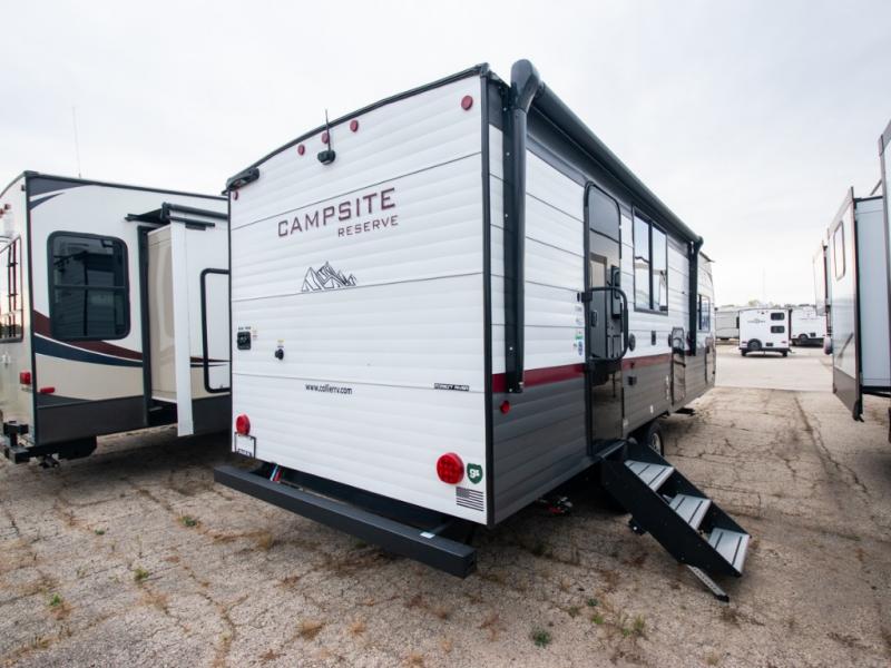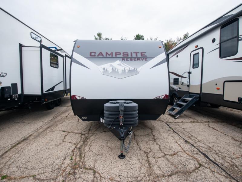 With any Campsite Reserve travel trailer by Forest River, you will enjoy comfort and convenience at every turn! These models feature the most storage in their class, along with the biggest windows in their class plus a mega pass-through storage so nothing gets left behind. Since they are built with a TimberStong UltraCore engineered superstructure, they will last for years to come, and the diamond plate on the front will help protect your unit from rock and debris on the way to your destination. Each model also includes a power awning with LED lights, a 100-watt solar package, and a sleek glass entrance door that will set you apart at the campground. You will love the interior amenities that make camping easier than ever, like the air fryer, Bluetooth radio, pull-out drawer under the dinette, and much more!