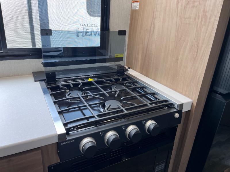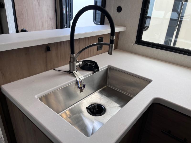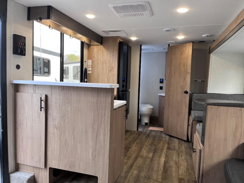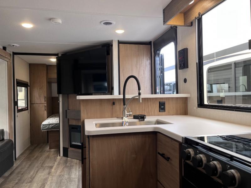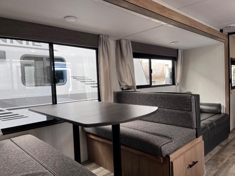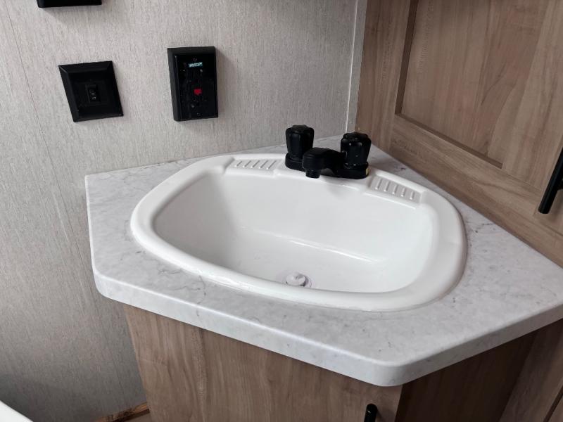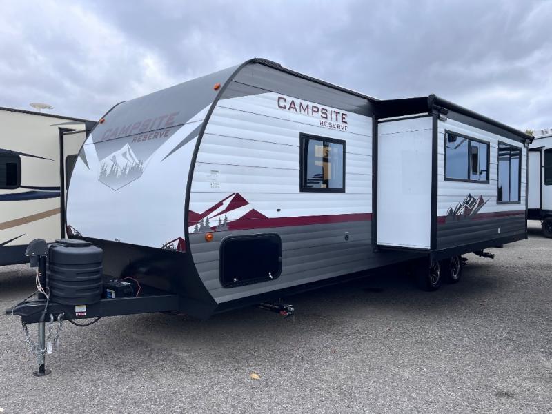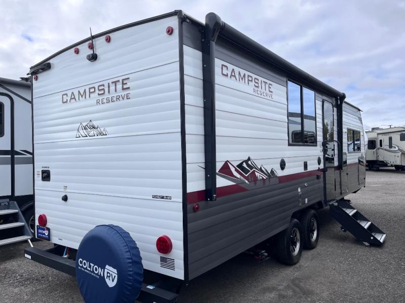 With any Campsite Reserve travel trailer by Forest River, you will enjoy comfort and convenience at every turn! These models feature the most storage in their class, along with the biggest windows in their class plus a mega pass-through storage so nothing gets left behind. Since they are built with a TimberStong UltraCore engineered superstructure, they will last for years to come, and the diamond plate on the front will help protect your unit from rock and debris on the way to your destination. Each model also includes a power awning with LED lights, a 100-watt solar package, and a sleek glass entrance door that will set you apart at the campground. You will love the interior amenities that make camping easier than ever, like the air fryer, Bluetooth radio, pull-out drawer under the dinette, and much more!