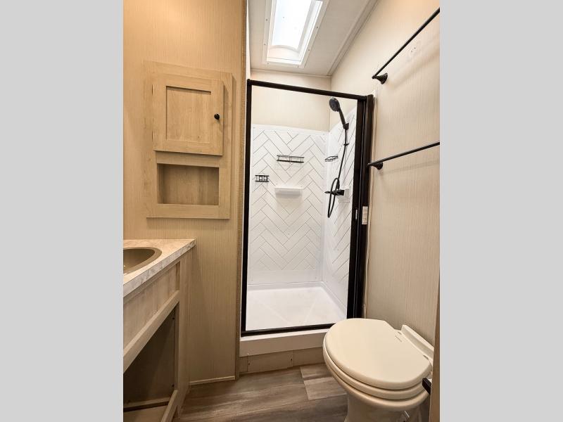 With any Cardinal fifth wheel by Forest River you will enjoy affordable luxury at every turn. These models are constructed with residential fiberglass insulation in the roof and floor, a sectioned ABS plastic underbelly armor, and a vacuum bonded, welded aluminum structure for added strength and durability. You will also find seamless roto-cast holding tanks, an outdoor shower, and electric front/rear stabilizers for quick and easy setup. Each model includes a best-in-class, high-efficiency 35,000 BTU furnace, along with a 13,500 BTU ducted A/C, with second and third A/C prep, plus an on-demand tankless water heater for added convenience. There are "Easy Clean" floors inside with no floor vents, a king-size bed on all floorplans, plus "Stow N Go" cornhole boards that are stowed under the dinette cushions when you're ready for fun!