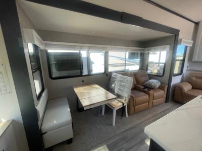 With any Cedar Creek Experience fifth wheel by Forest River, you will bet met with luxury features both inside and out! The True Gelcoat exterior is the best of the best in exteriors and the 3M bonded sidewalls will hold up over years of use. Each model includes Lippert 7,000 lb. axles with ABS brakes, Road Warrior suspension, plus TST tire pressure monitoring system to make towing that much easier. You will also find a 200 watt solar panel outside, along with a heated front storage compartment, a Nautilus P4 multi-function panel with an outside shower, black tank flush, and 12V battery disconnect, plus many more exterior conveniences. The interior will have you feeling like you haven't left home with vinyl floor coverings, Ashley furniture power theater seating, a cozy fireplace, a large bath counter, and the list of comforts goes on! Each model is also pre-wired for satellite to the roof, and you're sure to never go bored with a Smart TV in the living room and an added bedroom TV!