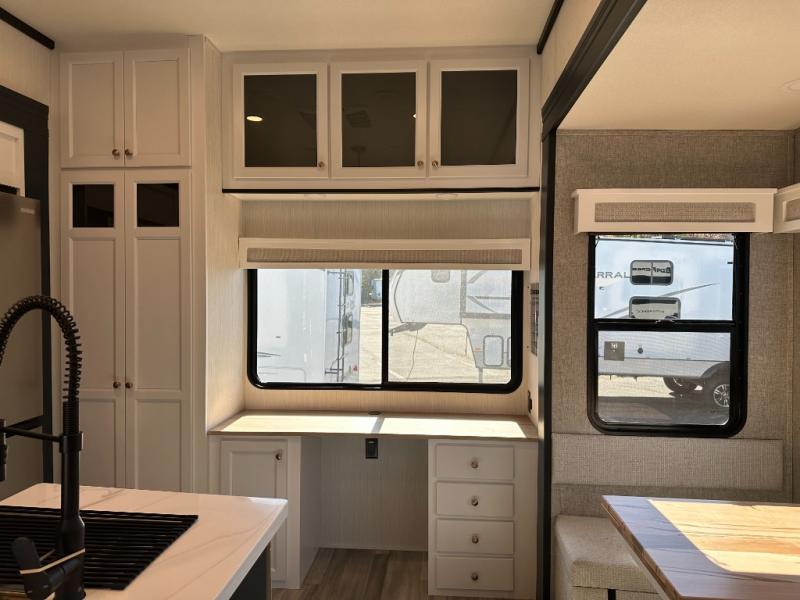 Get ready to work and play in this Cedar Creek Experience fifth wheel! The living area features a desk area with overhead storage so you can set up a dedicated work space and get things done while you're away. Of course you'll spend most of your time relaxing and having fun. The 15' power awning will allow you to set up an exterior space as well, to relax or set up some outdoor yard games. Inside you will love the front bedroom with king bed, the well-equipped kitchen, and the living area with both power theater seats and a hide-a-bed sofa for lounging. Three slide outs give you lots of floor space and a roomy feel for everything you might want to do, like watch a movie on the Smart TV or relax by the fireplace!