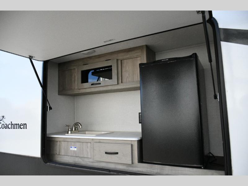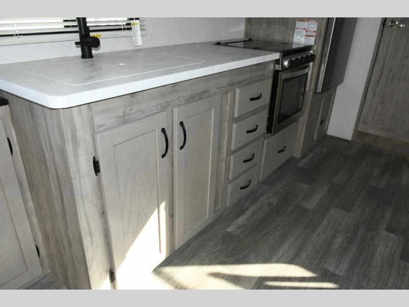 The Chaparral Lite is built with Tri-Tex powder-coated frame technology, offering up to 5x more weather resistance. The dual-sided Azdel composite sidewalls provide excellent insulation and long-term durability, while the Road Armor suspension with heavy-duty shackles and wet bolts ensures a smooth ride wherever you roam.