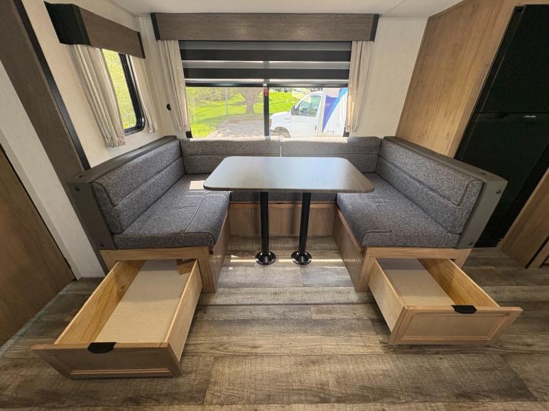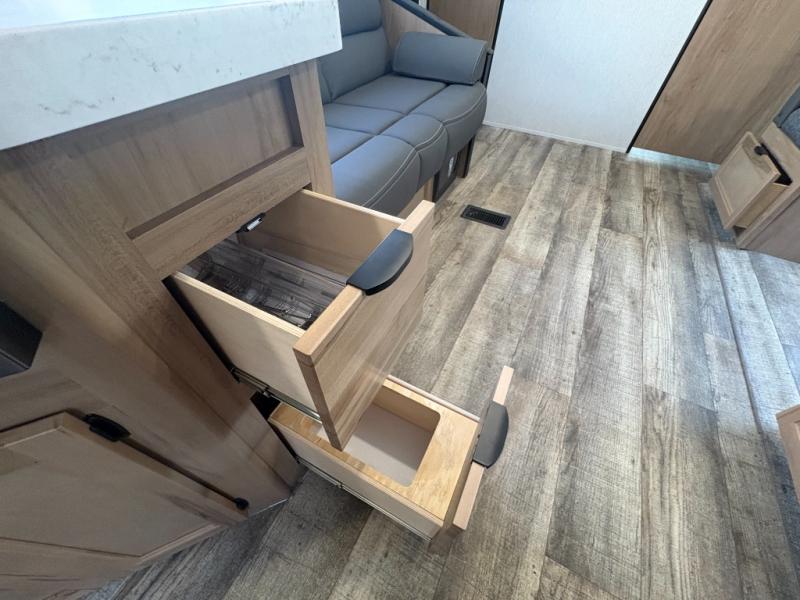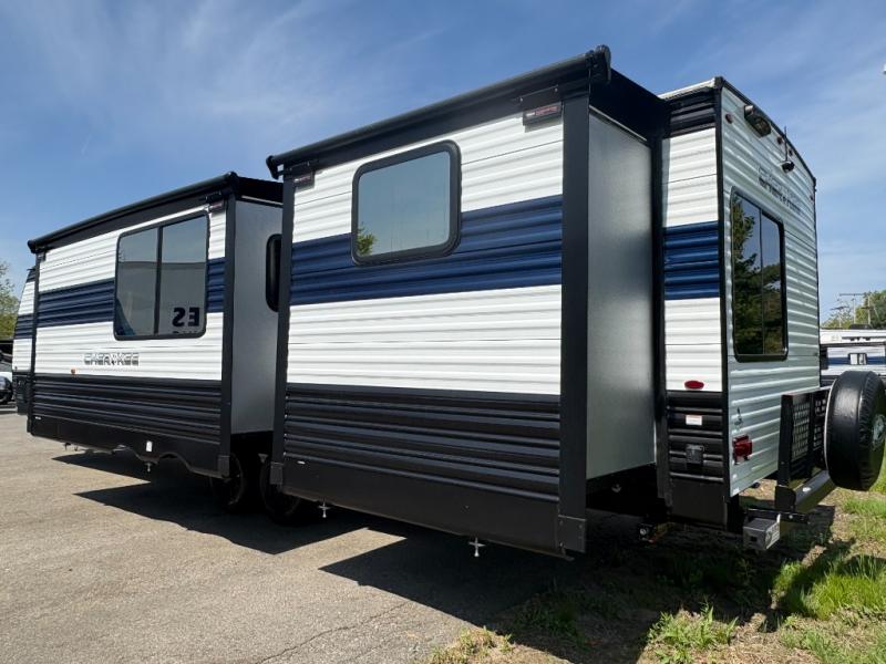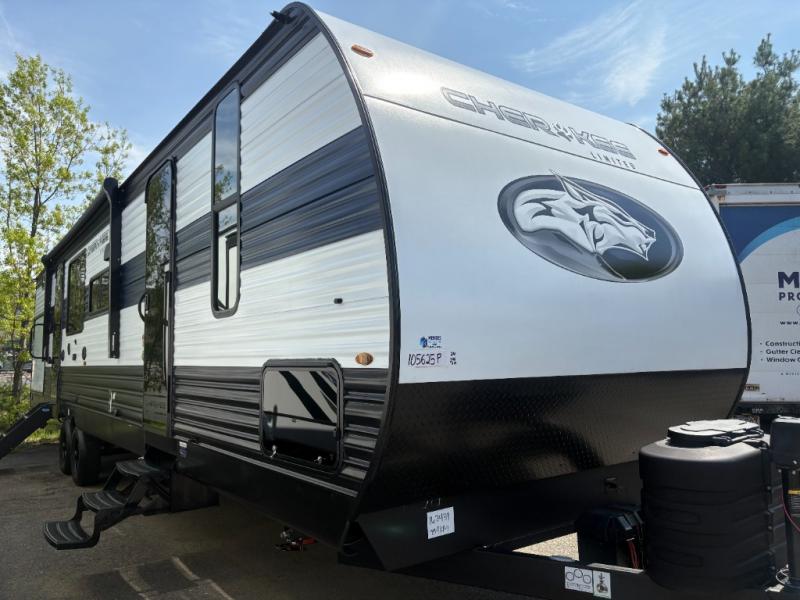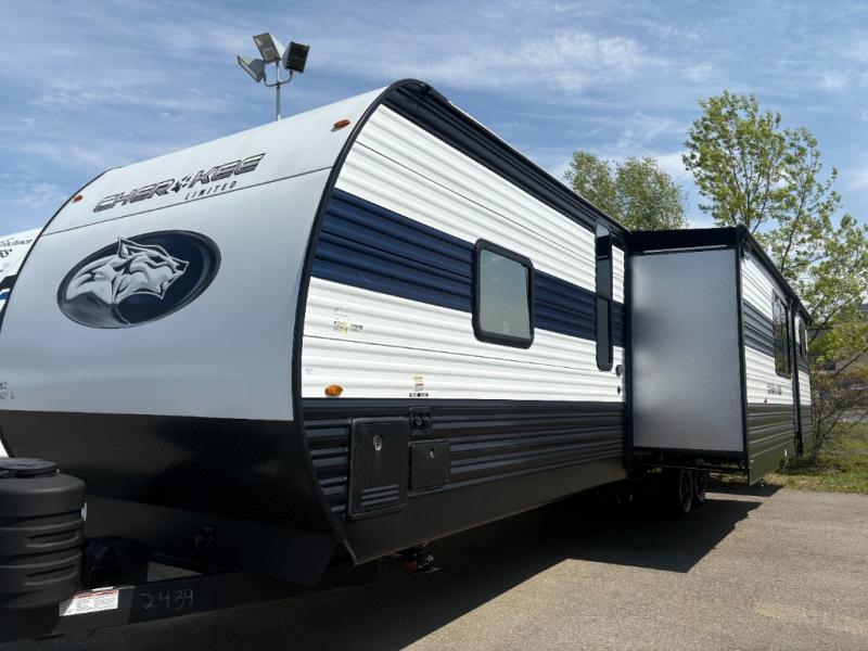 If the open road is calling your name, then answer it with one of these Forest River Cherokee travel trailers or toy haulers! A seamless roofing membrane with heat reflectivity covers these units and an armored underbelly tank enclosure protects it from road debris. The Power Gear frame technology holds them together and also comes with a space saver rail design. An outside shower with hot and cold water helps to keep the dirt outside where it belongs. With the Campfire package, you will get an air fryer, an on demand tankless water heater, bedroom cabinets, and more convenient features. A few other features you will appreciate include a super kitchen, USB charging station, and light filtering sheer shading premium blackout zebra shades for added privacy. Come find your favorite model today!