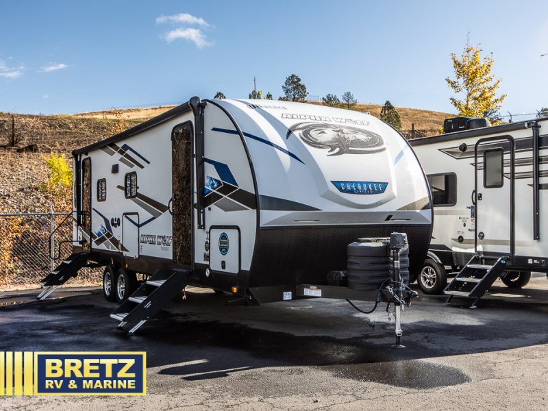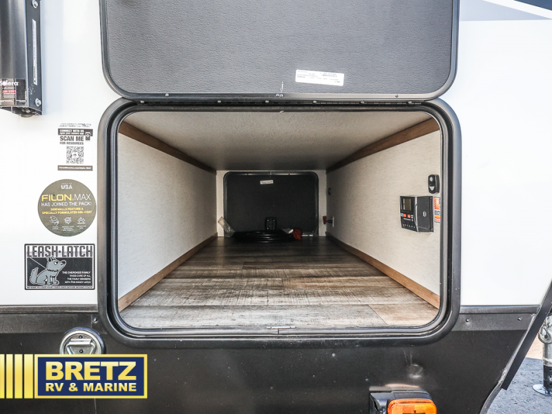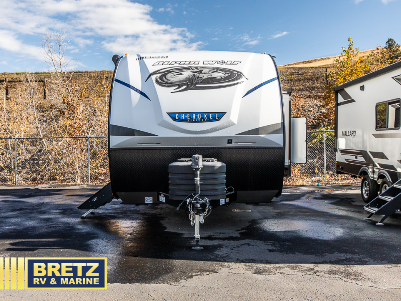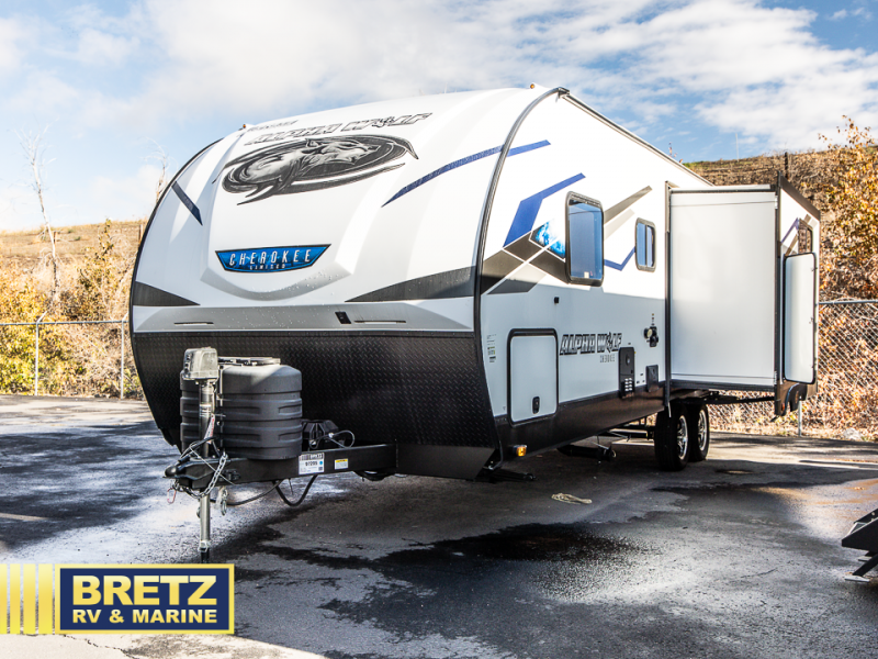 With any Cherokee Alpha Wolf travel trailer by Forest River you'll enjoy outstanding amenities, quality construction, and an affordable price. Each model features a "ToughBend" rigid skirt metal design, 5/8" tongue and groove plywood floor decking, and a "SuperTruss" roof structure that will hold up through years of camping memories. There is a "blackout" kitchen appliance package indoors, along with an LED interior lighting package, a 15,000 BTU quick cool central air conditioning, and many more comforts. These travel trailers include a utility center convenience light so you can easily check tank levels, and the outdoor TV prep means you can bring along your television for the big game. The Limited Package, Weather Guard Package, and Convenience Package include additional features found on select models, and there available options that can be added to further customize your Cherokee Alpha Wolf!