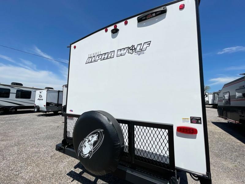 With any Cherokee Alpha Wolf travel trailer by Forest River you'll enjoy outstanding amenities, quality construction, and an affordable price. Each model features a "ToughBend" rigid skirt metal design, 5/8" tongue and groove plywood floor decking, and a "SuperTruss" roof structure that will hold up through years of camping memories. There is a "blackout" kitchen appliance package indoors, along with an LED interior lighting package, a 15,000 BTU quick cool central air conditioning, and many more comforts. These travel trailers include a utility center convenience light so you can easily check tank levels, and the outdoor TV prep means you can bring along your television for the big game. The Limited Package, Weather Guard Package, and Convenience Package include additional features found on select models, and there available options that can be added to further customize your Cherokee Alpha Wolf!