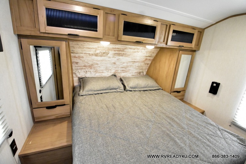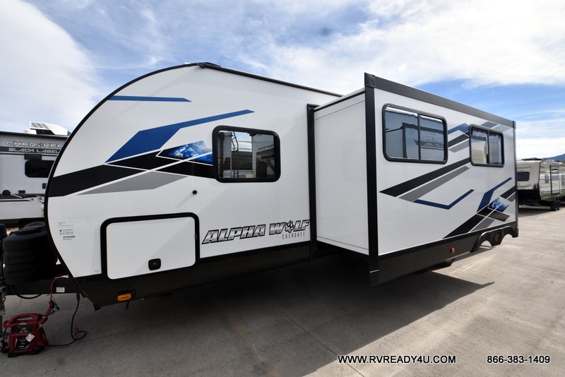 With any Cherokee Alpha Wolf travel trailer by Forest River you'll enjoy outstanding amenities, quality construction, and an affordable price. Each model features a "ToughBend" rigid skirt metal design, 5/8" tongue and groove plywood floor decking, and a "SuperTruss" roof structure that will hold up through years of camping memories. There is a "blackout" kitchen appliance package indoors, along with an LED interior lighting package, a 15,000 BTU quick cool central air conditioning, and many more comforts. These travel trailers include a utility center convenience light so you can easily check tank levels, and the outdoor TV prep means you can bring along your television for the big game. The Limited Package, Weather Guard Package, and Convenience Package include additional features found on select models, and there available options that can be added to further customize your Cherokee Alpha Wolf!