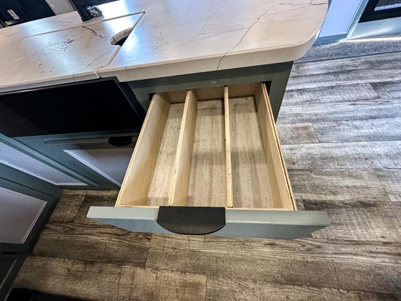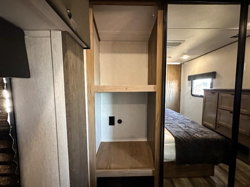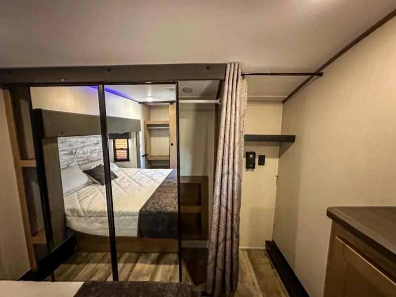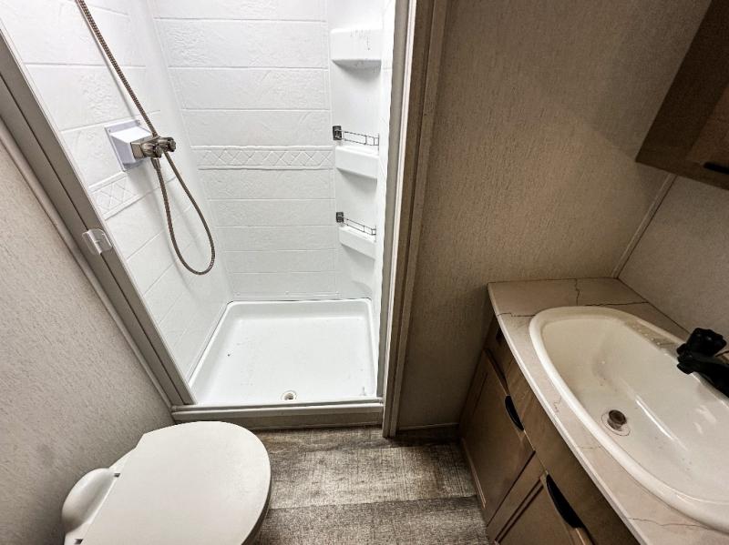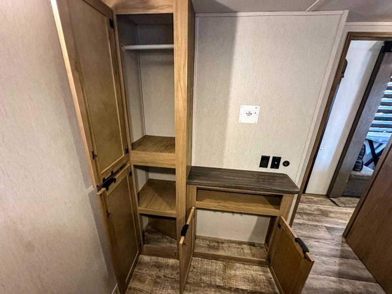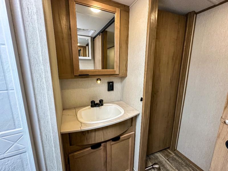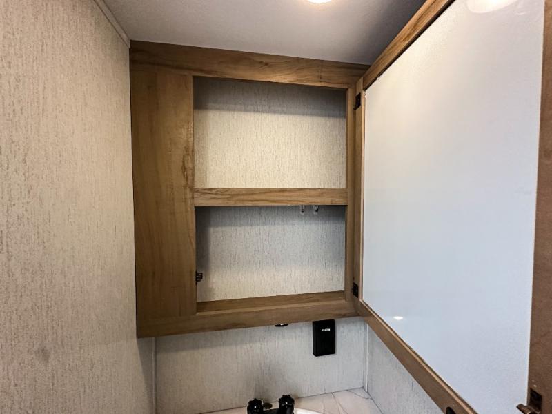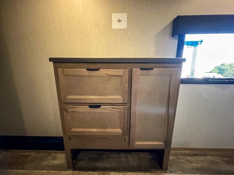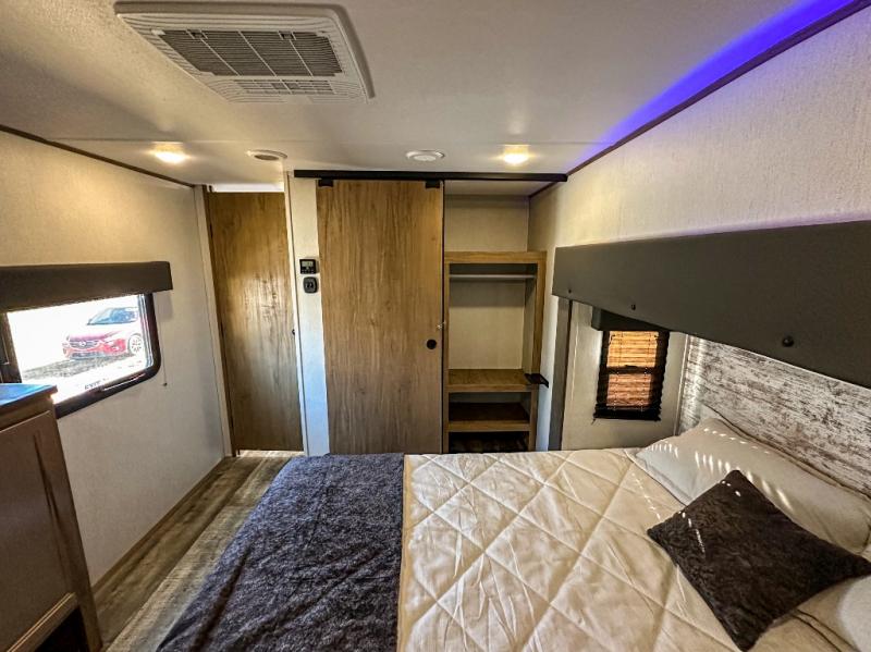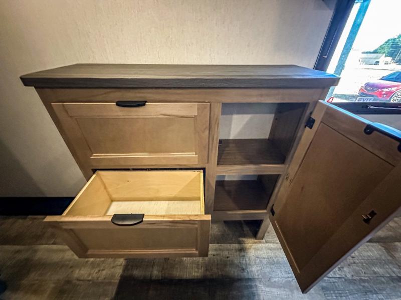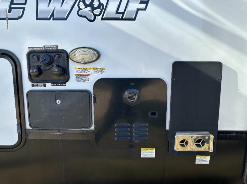 You will have amazing residential comfort in the Forest River Cherokee Arctic Wolf Suite fifth wheels! These units have a “SuperStor” dual-cavern basement storage compartment to allow you to bring more gear, and they have been constructed with a “ToughBend” rigid skirt metal design, a 1x engineered wood “SuperTruss” roof structure with 3/8" decking, and a 5/8” tongue-and-groove plywood floor decking. Each model includes Leash Latch pet safety technology, an outside shower with hot/cold water, preparations for an exterior TV, motion-sensing lighting, and a smart monitor panel with smart phone Bluetooth connectivity. The supersized central air conditioning unit (15,000 BTU) with quick cool and second oversized 15,000 BTU ducted air conditioner will cool your unit down in a snap when you camp in the hot summer months.
