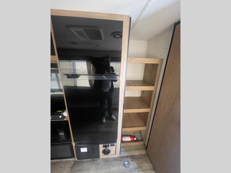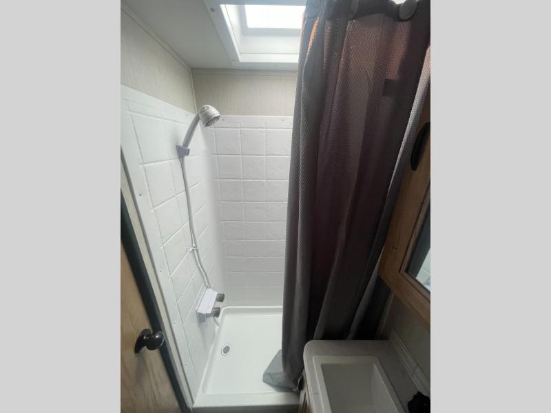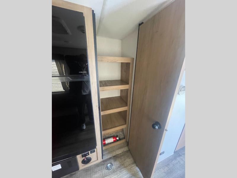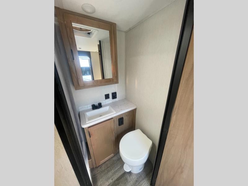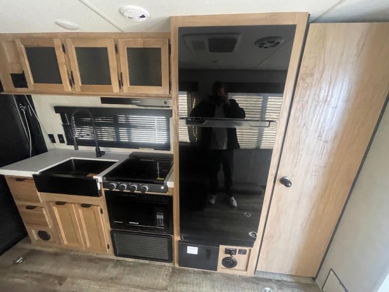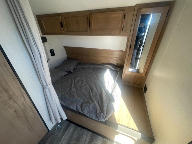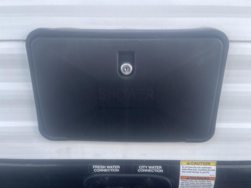 You will undoubtedly love this Cherokee Grey Wolf toy hauler! Because of its ability to have up to 15' 2" of cargo space, you can easily load up the ramp door and head out to your outdoor toy land, and you can bring much more than just your toys since this trailer also comes with exterior storage, a bedside wardrobe, overhead cabinets, an 10-cubic foot refrigerator, and a kitchen pantry. The full bathroom is another feature that is going to allow you to experience a true getaway since you won't need to find public facilities to use while you're gone, and the USB charging stations will allow you to charge your phone inside while you're outside playing.