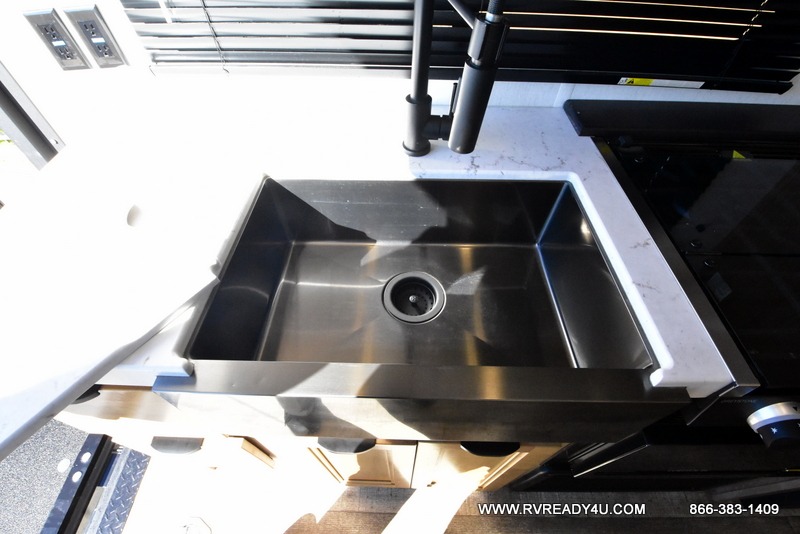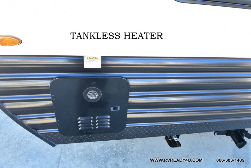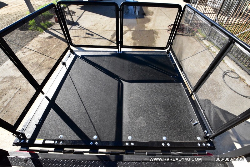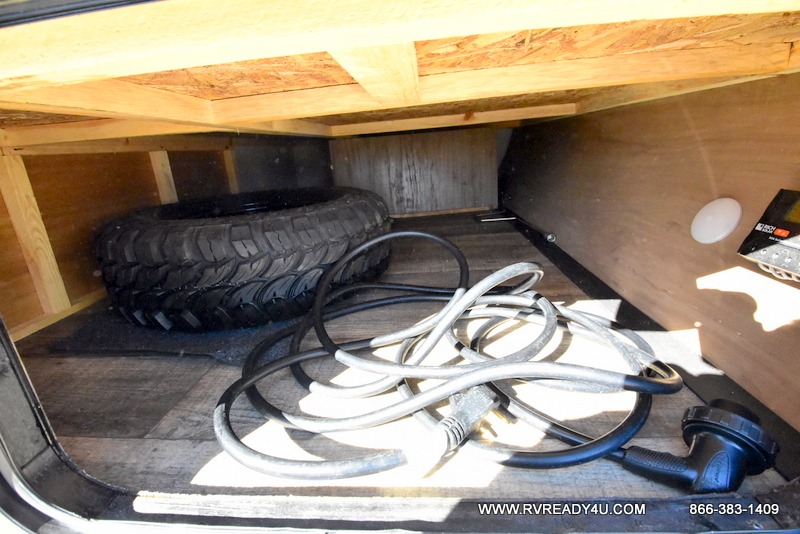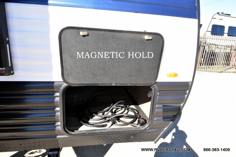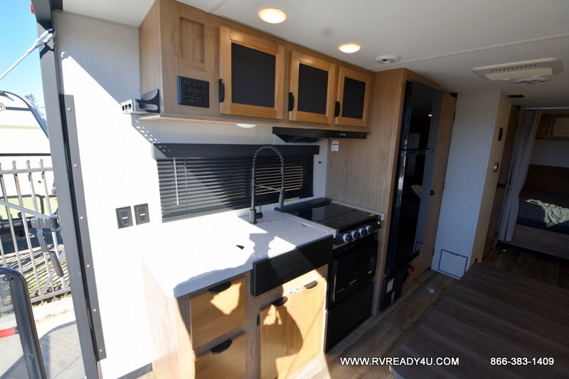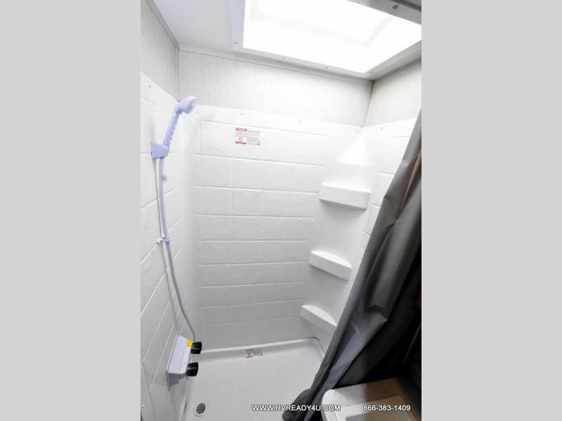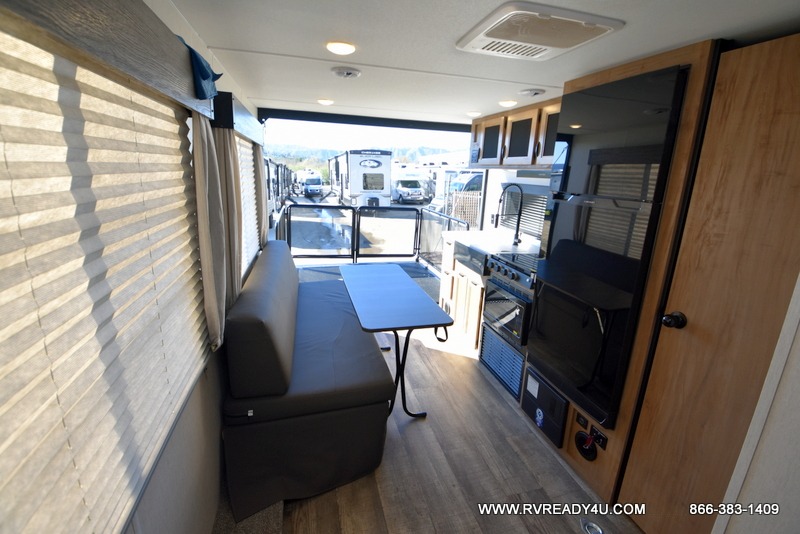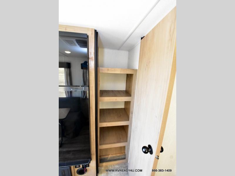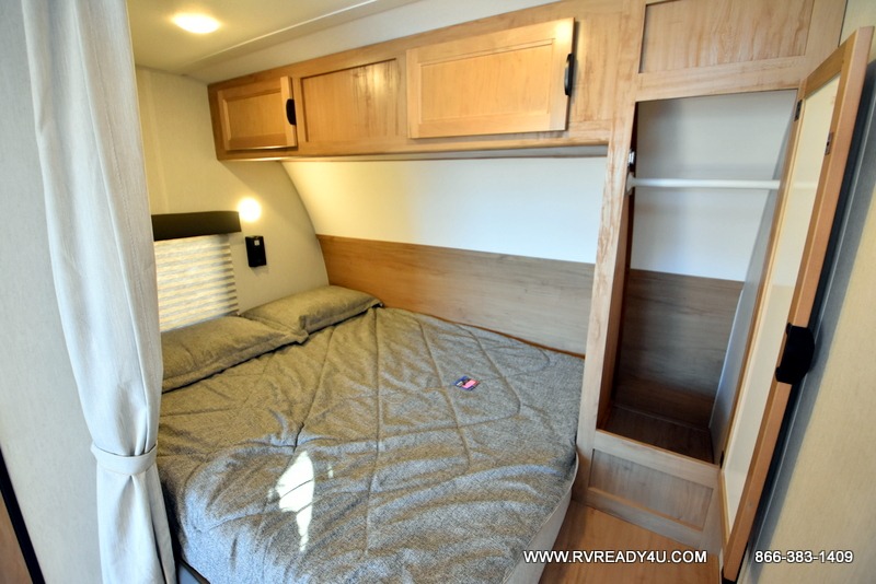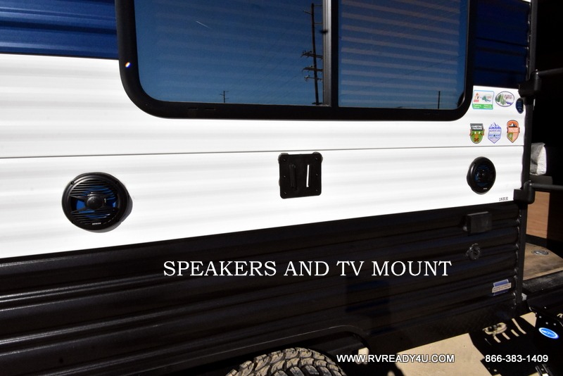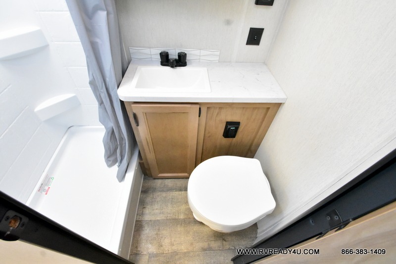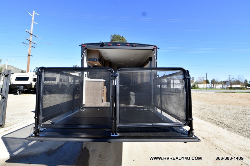 You will undoubtedly love this Cherokee Grey Wolf toy hauler! Because of its ability to have up to 15' 2" of cargo space, you can easily load up the ramp door and head out to your outdoor toy land, and you can bring much more than just your toys since this trailer also comes with exterior storage, a bedside wardrobe, overhead cabinets, an 10-cubic foot refrigerator, and a kitchen pantry. The full bathroom is another feature that is going to allow you to experience a true getaway since you won't need to find public facilities to use while you're gone, and the USB charging stations will allow you to charge your phone inside while you're outside playing.