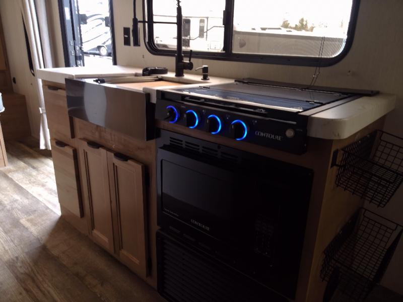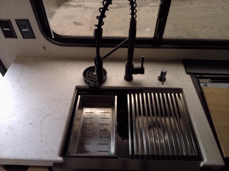 Time spent at the campground in this well designed travel trailer will be time well spent! The front bedroom includes a walk-around RV king bed, dual bedroom wardrobes plus USB ports to charge your phone or laptop. You can whip up breakfast in the modern kitchen that includes an air fryer, then dine around the U-shaped dinette with a panoramic window. This area can also double as sleeping space for one to two guests as well! A pantry will let you stock up on snacks and the TV mount means you can bring along a television if you want to enjoy movie nights. There is also a full bath with a tub/shower where you can freshen up each day!