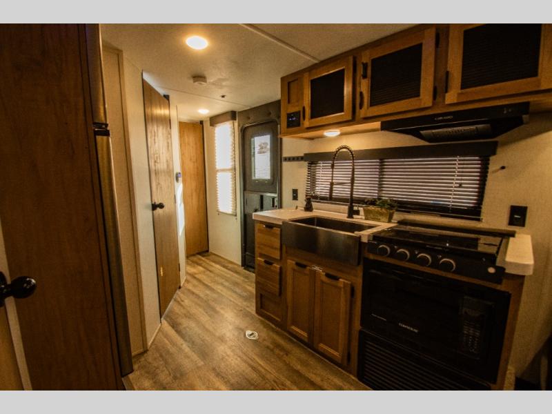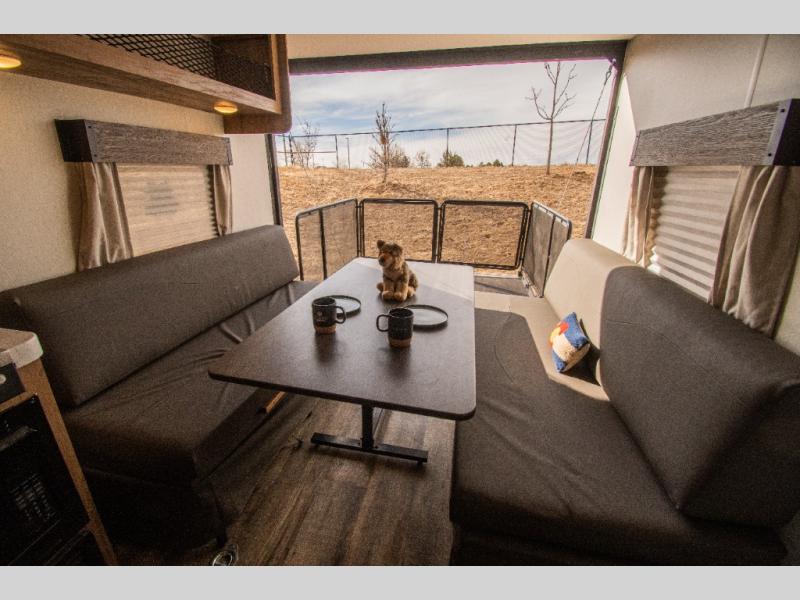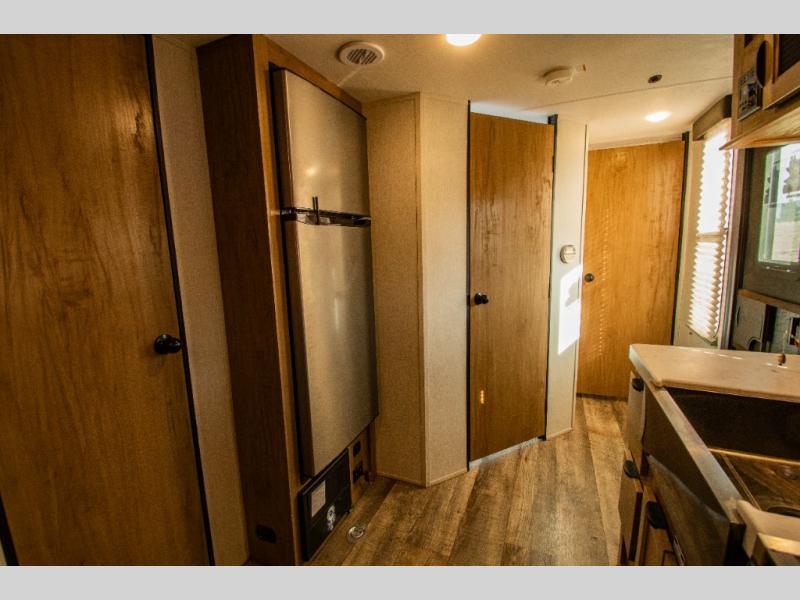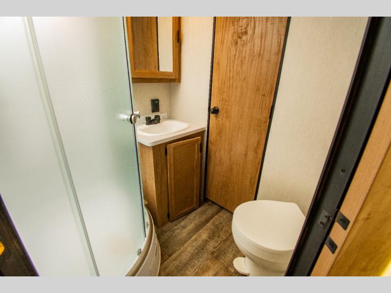 12' 9" Cargo Space: With a rear ramp door, this toy hauler provides easy access to a spacious cargo area that can accommodate your favorite outdoor toys and gear. The 12' 9" cargo space is perfect for ATVs, bikes, or any adventure equipment you want to bring along.