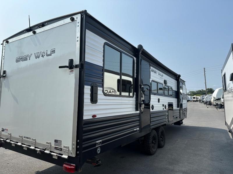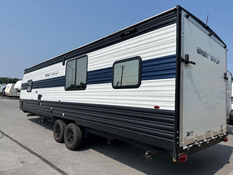 Whether it's a journey that will take you to new locations or a tried-and-true getaway to that favorite and memorable destination, the Forest River Cherokee Grey Wolf travel trailers and toy haulers are going to make the trip worth it every single time! You can travel in confidence with the premium wheel package, seamless roofing membrane with heat reflectivity, Power Gear frame technology with space-saver rail design, and Cherokee back-up camera system. The Cherokee Grey Wolf's interior is highly attractive with its stainless steel kitchen suite package and premium bedding ensemble and comforter. You will also find a black waste tank flush-out kit, an outside shower with hot and cold water, an armored underbelly tank enclosure, and an RV grill quick connect.