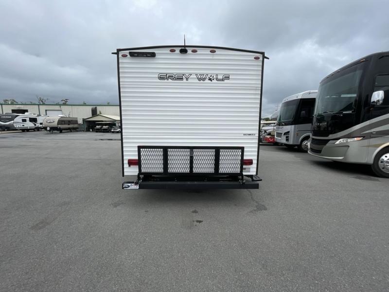 Whether it's a journey that will take you to new locations or a tried-and-true getaway to that favorite and memorable destination, the Forest River Cherokee Grey Wolf travel trailers and toy haulers are going to make the trip worth it every single time! You can travel in confidence with the premium wheel package, seamless roofing membrane with heat reflectivity, Power Gear frame technology with space-saver rail design, and Cherokee back-up camera system. The Cherokee Grey Wolf's interior is highly attractive with its stainless steel kitchen suite package and premium bedding ensemble and comforter. You will also find a black waste tank flush-out kit, an outside shower with hot and cold water, an armored underbelly tank enclosure, and an RV grill quick connect.