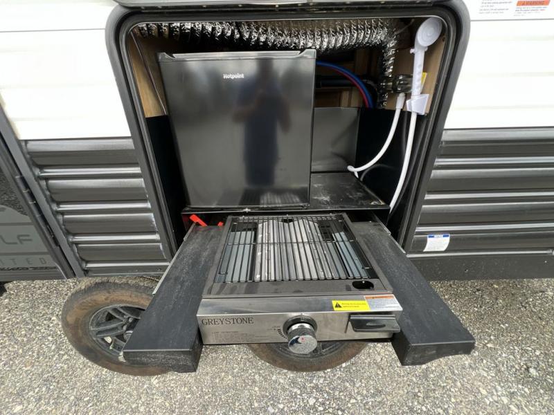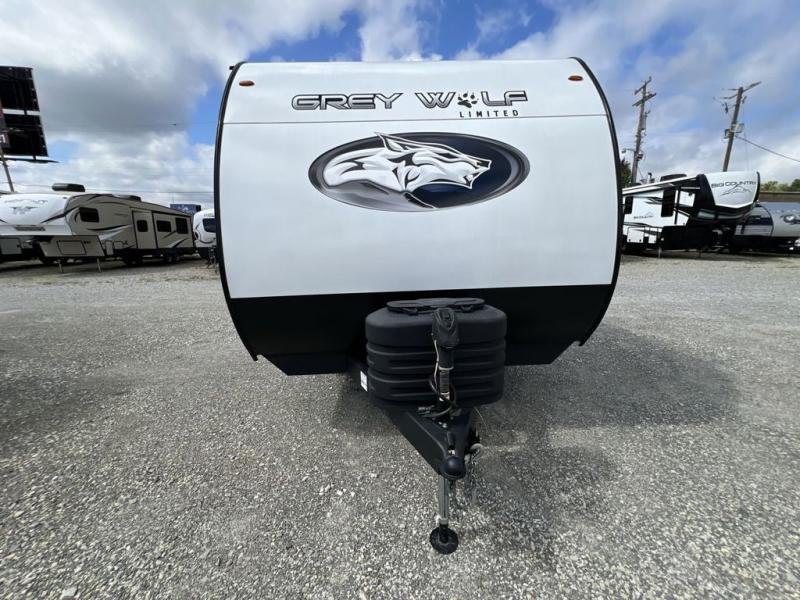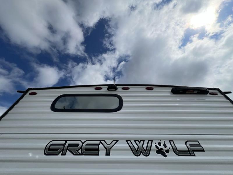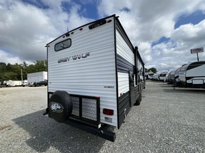 Whether it's a journey that will take you to new locations or a tried-and-true getaway to that favorite and memorable destination, the Forest River Cherokee Grey Wolf travel trailers and toy haulers are going to make the trip worth it every single time! You can travel in confidence with the premium wheel package, seamless roofing membrane with heat reflectivity, Power Gear frame technology with space-saver rail design, and Cherokee back-up camera system. The Cherokee Grey Wolf's interior is highly attractive with its stainless steel kitchen suite package and premium bedding ensemble and comforter. You will also find a black waste tank flush-out kit, an outside shower with hot and cold water, an armored underbelly tank enclosure, and an RV grill quick connect.