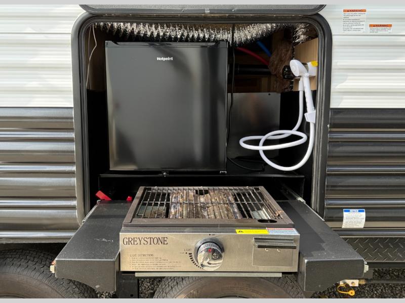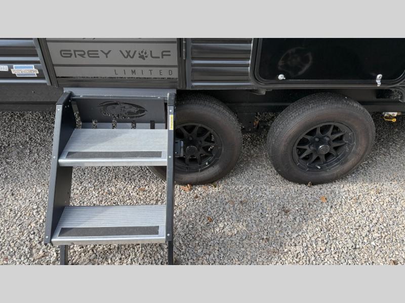 Whether it's a journey that will take you to new locations or a tried-and-true getaway to that favorite and memorable destination, the Forest River Cherokee Grey Wolf travel trailers and toy haulers are going to make the trip worth it every single time! You can travel in confidence with the premium wheel package, seamless roofing membrane with heat reflectivity, Power Gear frame technology with space-saver rail design, and Cherokee back-up camera system. The Cherokee Grey Wolf's interior is highly attractive with its stainless steel kitchen suite package and premium bedding ensemble and comforter. You will also find a black waste tank flush-out kit, an outside shower with hot and cold water, an armored underbelly tank enclosure, and an RV grill quick connect.