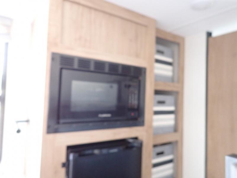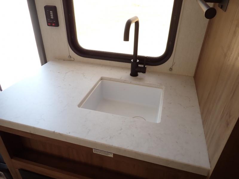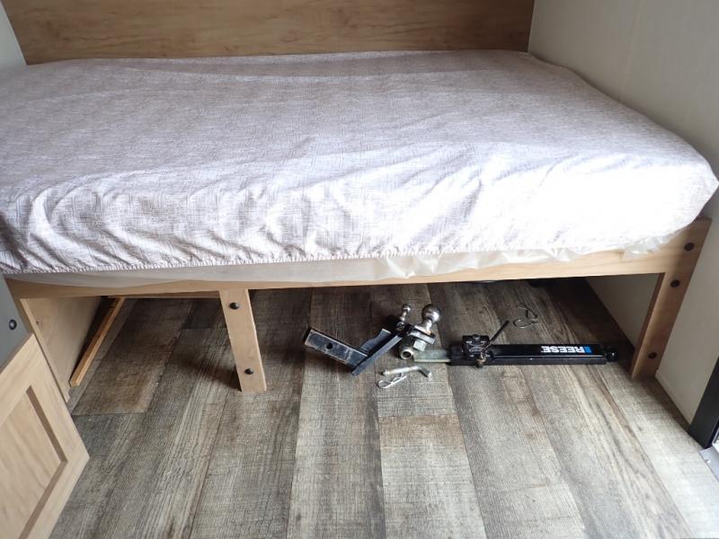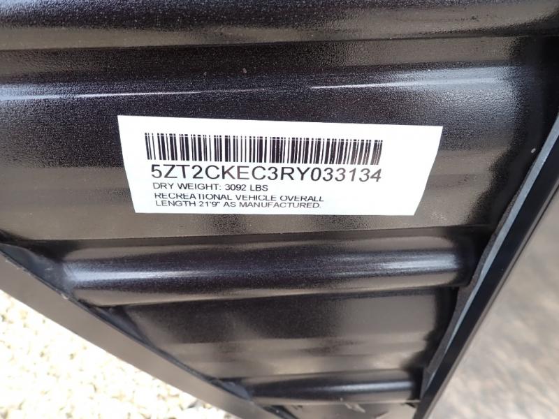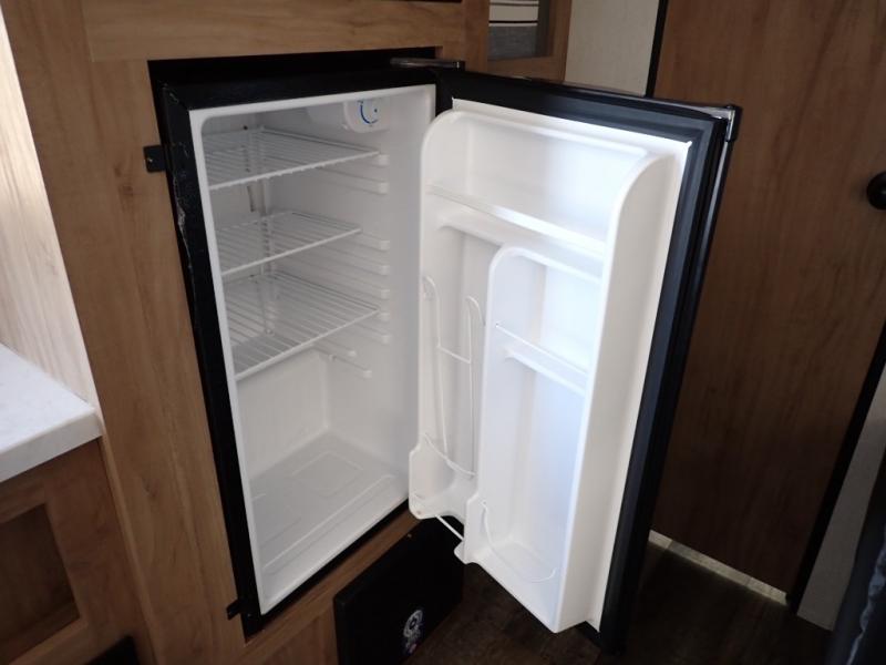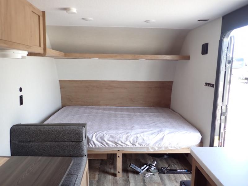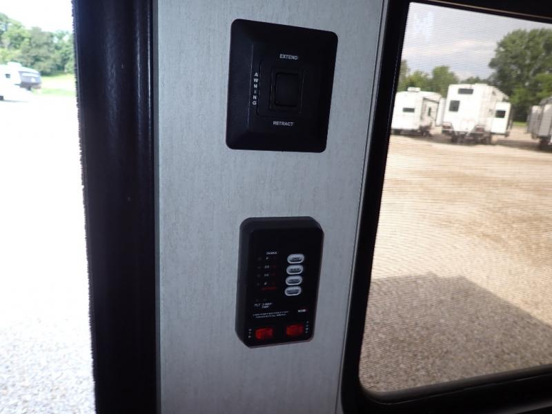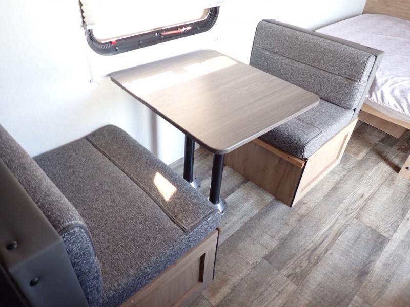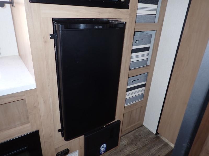 Enjoy family adventures in this all-electric bunk model which features sleeping for four or six depending on size with a queen bed up front, oversized bunks in the rear roadside corner, and you could even convert the booth dinette to sleep more. Inside, you will find ample storage with overhead cabinets and a large shelf above the queen bed, plus four shelves next to the refrigerator and microwave/air fryer that feature decorative storage bins for your things. Use this space for pantry items, towels, or clothing storage. There is even a 5,000 BTU electric fireplace below the counter and sink to bring you a bit of heat on those chilly nights, and you will find TV prep both inside and out if you wish to add TVs for more entertainment. On the outside, you will also find a 12' awning and plenty of outside storage for your camping gear, plus more!