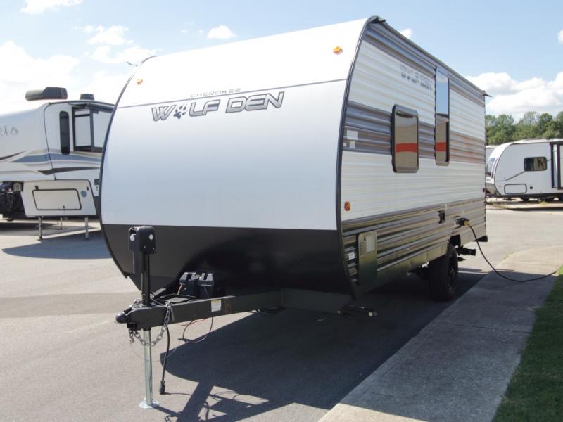 The Cherokee Wolf Den series from Forest River is designed to deliver comfort and convenience at an affordable price. Every model includes a queen bed, a tub/shower, and practical kitchen amenities that make your campsite feel like home. Lightweight construction ensures easier towing, while interior and exterior storage keeps your essentials organized.